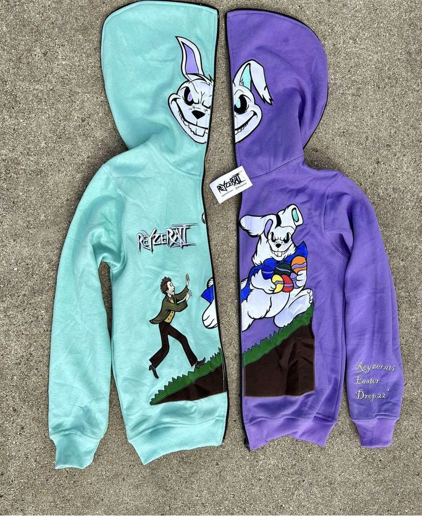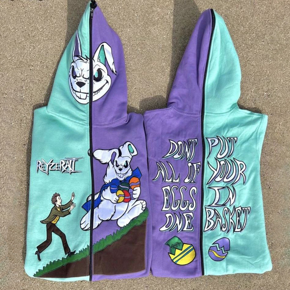 Fashion Colorblock Evil Rabbit Print Long Sleeve Hoodie