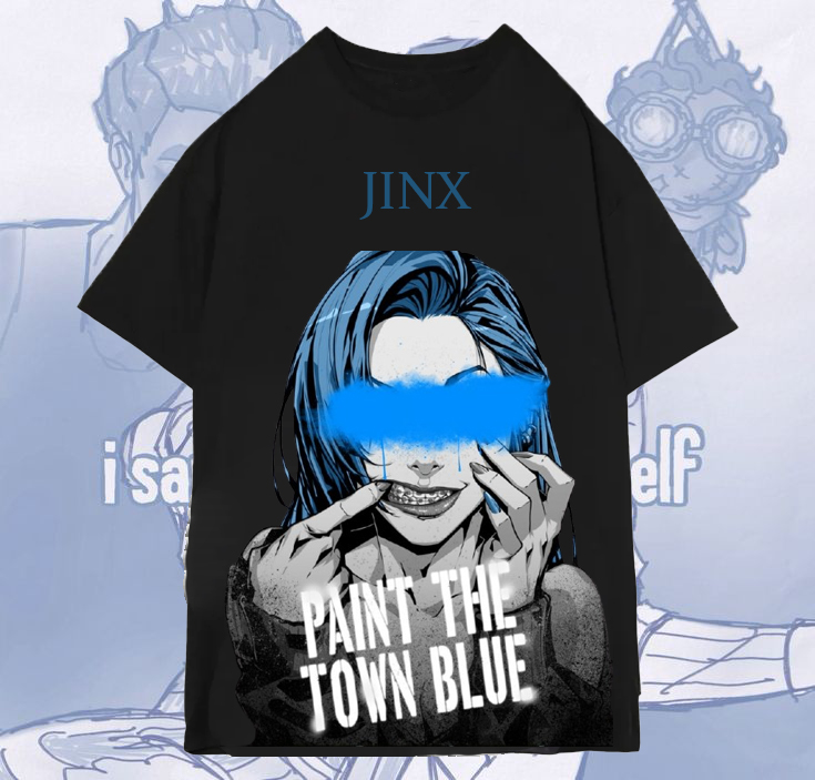 Cakkey Arcane Unisex Lol Jinx Baskılı Oversize T-Shirt