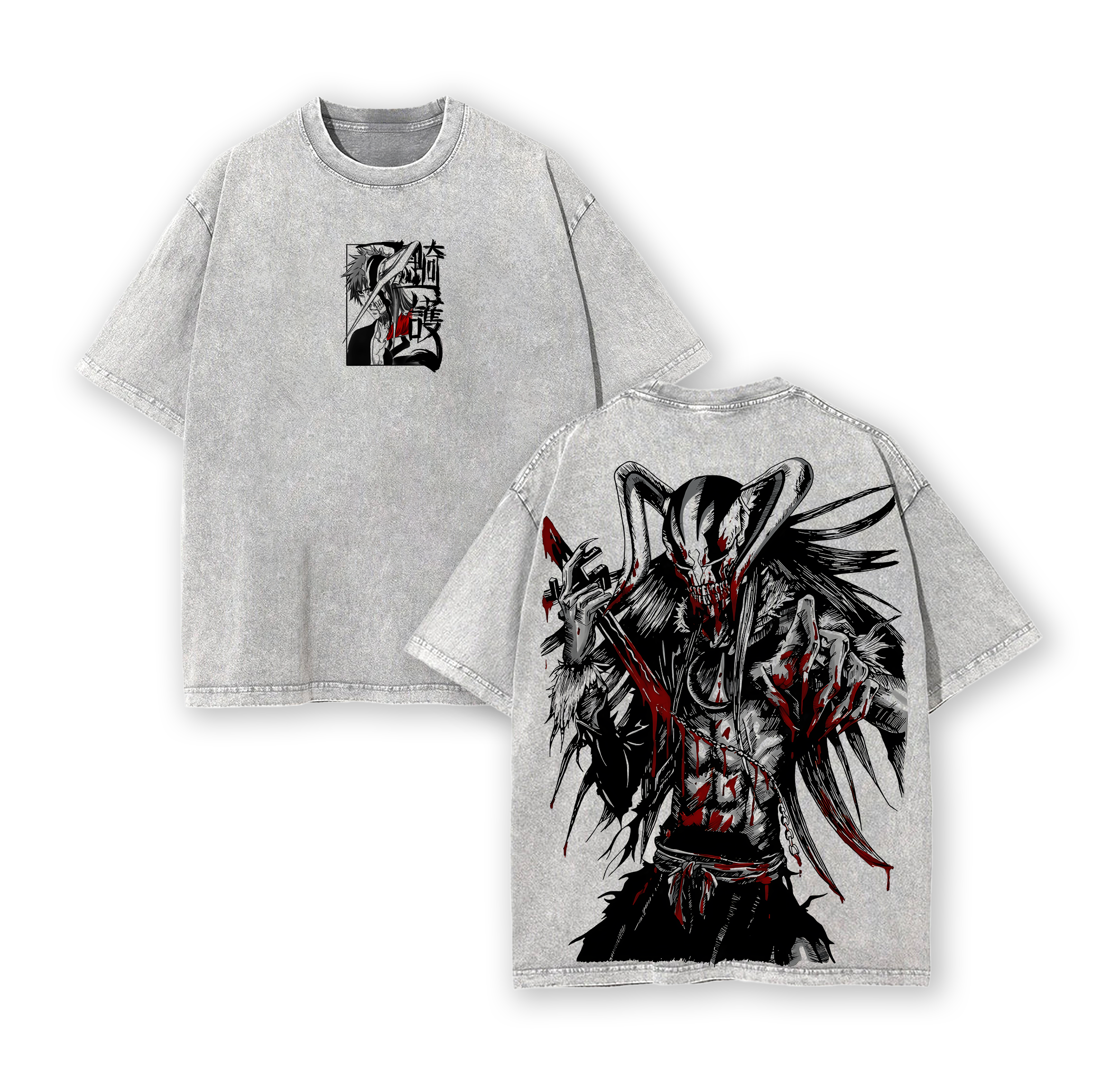Ichigo Hollow Form Bleach Hoodie Washed – Bleach Vintage Washed Heavy Cotton Oversized Anime Manga Hoodie, Vasto Lorde Mask Art Graphic, Kurosaki Ichigo Transformation Edition, Retro Unisex Streetwear, Tee / T-Shirt Washed Option