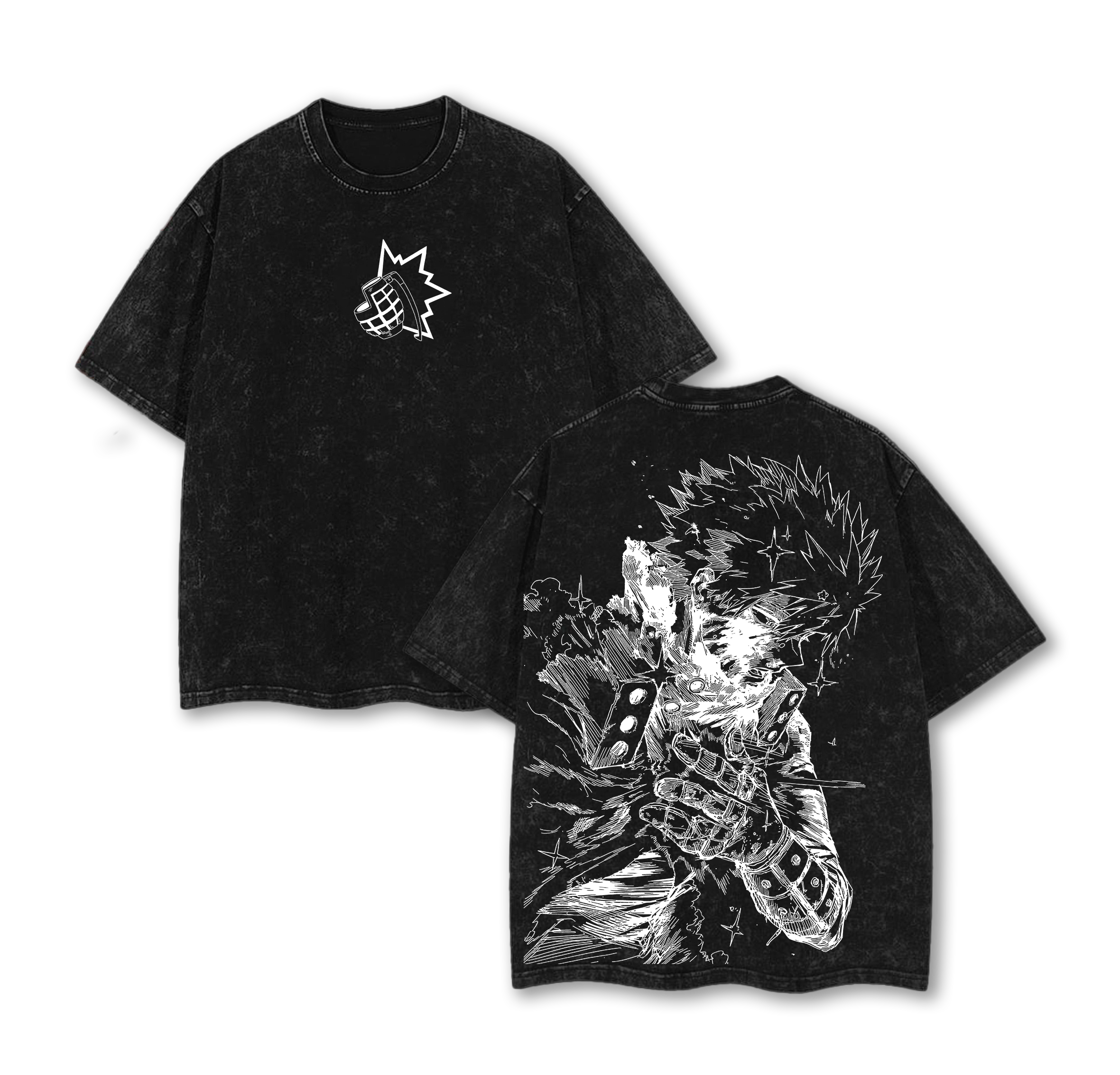 Katsuki Bakugo - My Hero Academia Anime Double Printed Vintage Washed Tee