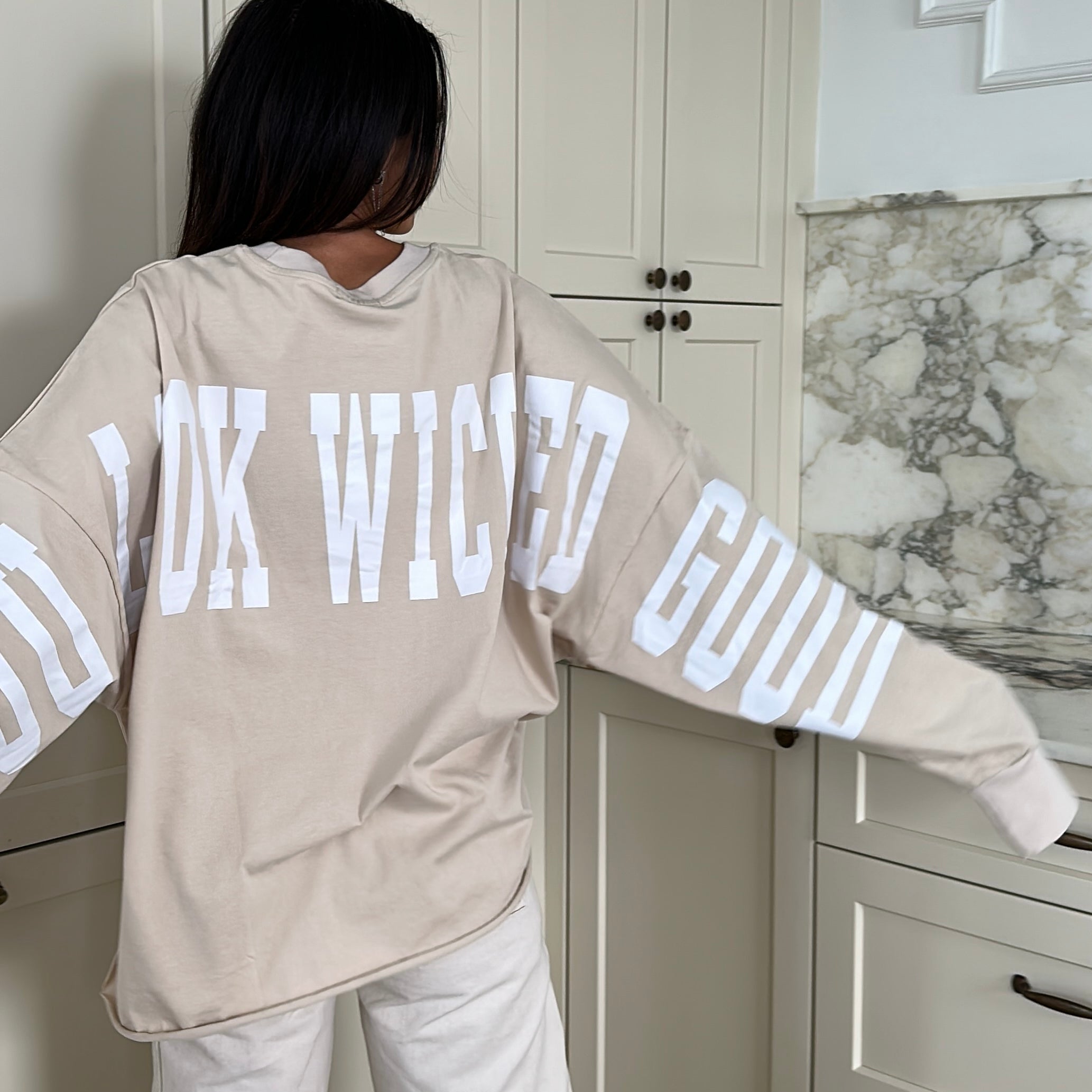 You Look Wicked Good long sleeve in "oat milk latte"