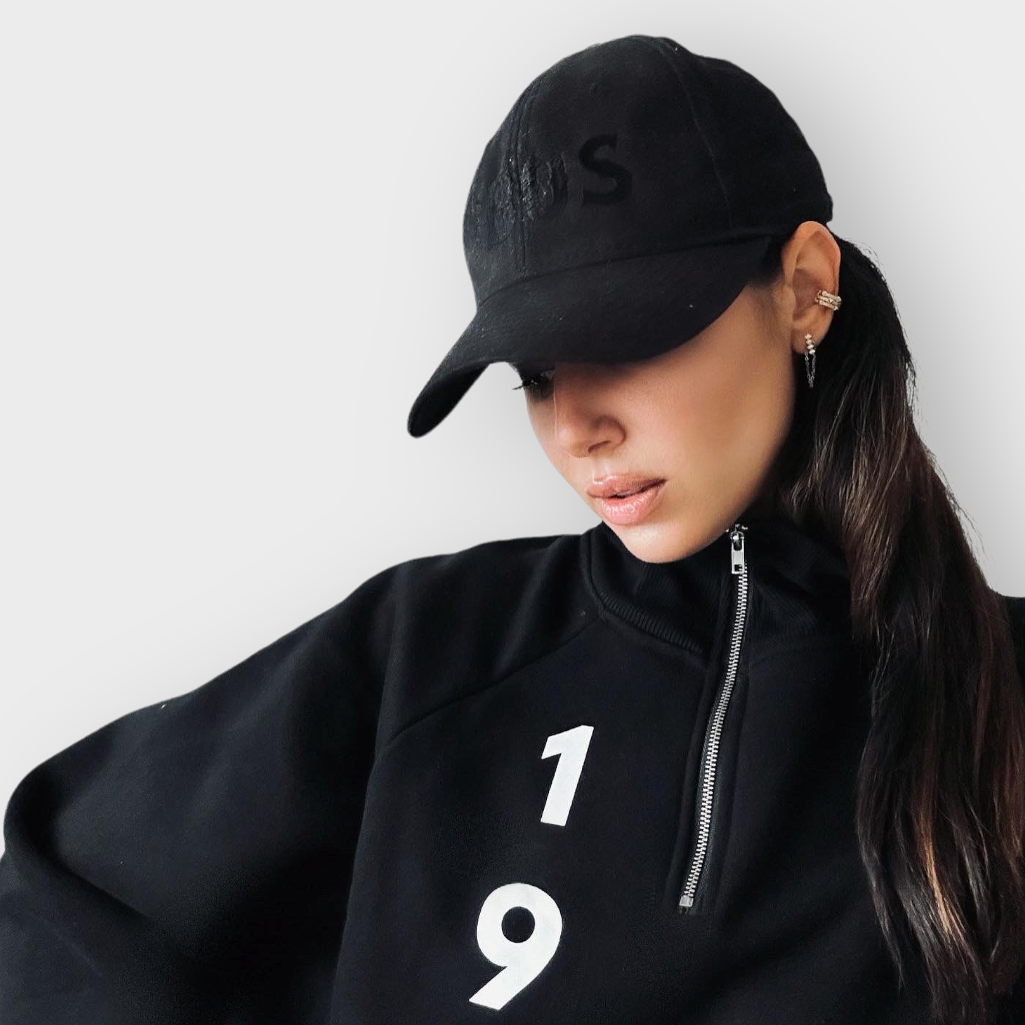 HAUNT STUDDED SCULPT STRETCH ZIP HOODIE BLACK