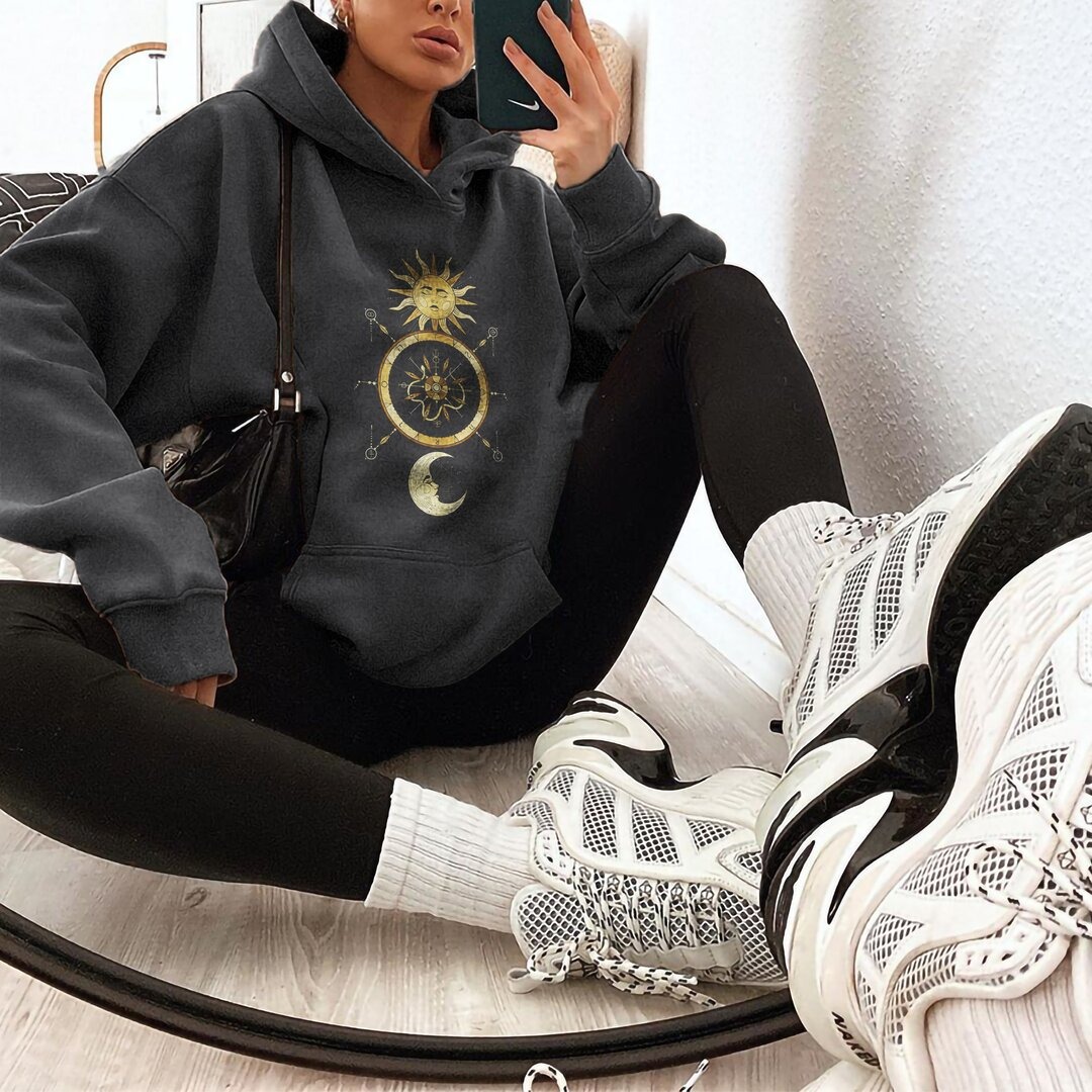 Star Moon Print Vintage Long Sleeve Casual Sweatshirt