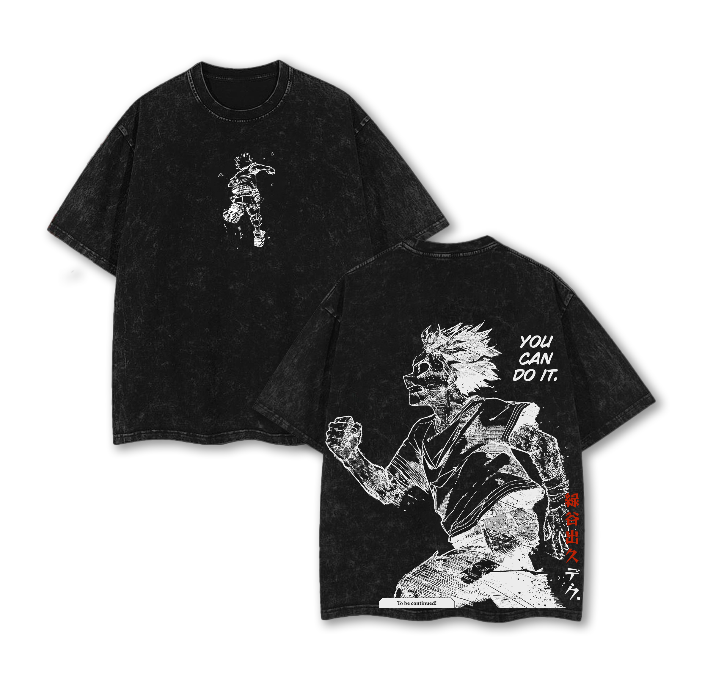 Deku My Hero Academia Anime Double Printed Vintage Washed Tee