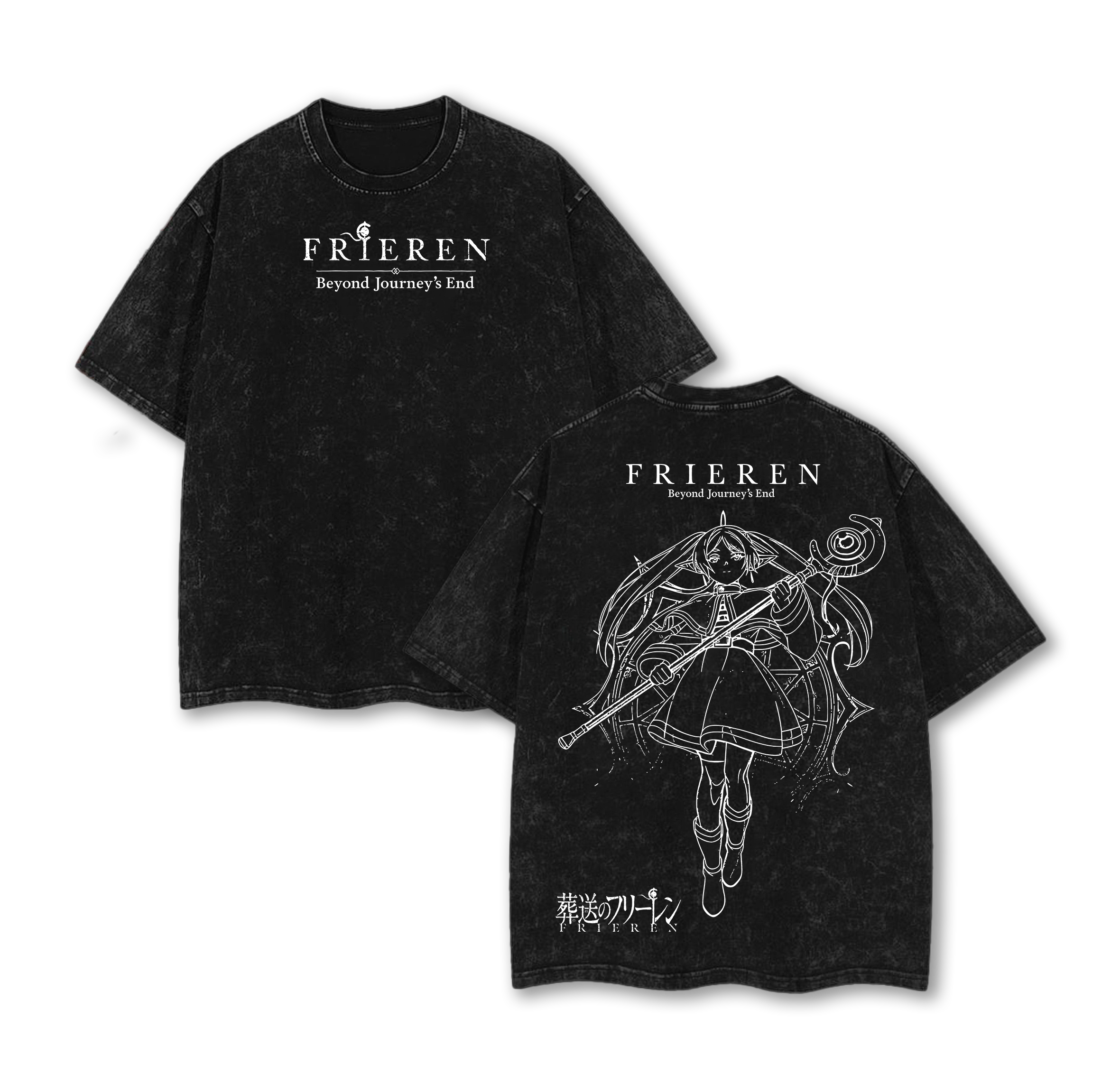 Frieren Tee Washed – Frieren Beyond Journey’s End Vintage Washed Heavy Cotton Oversized Anime Manga T-Shirt
