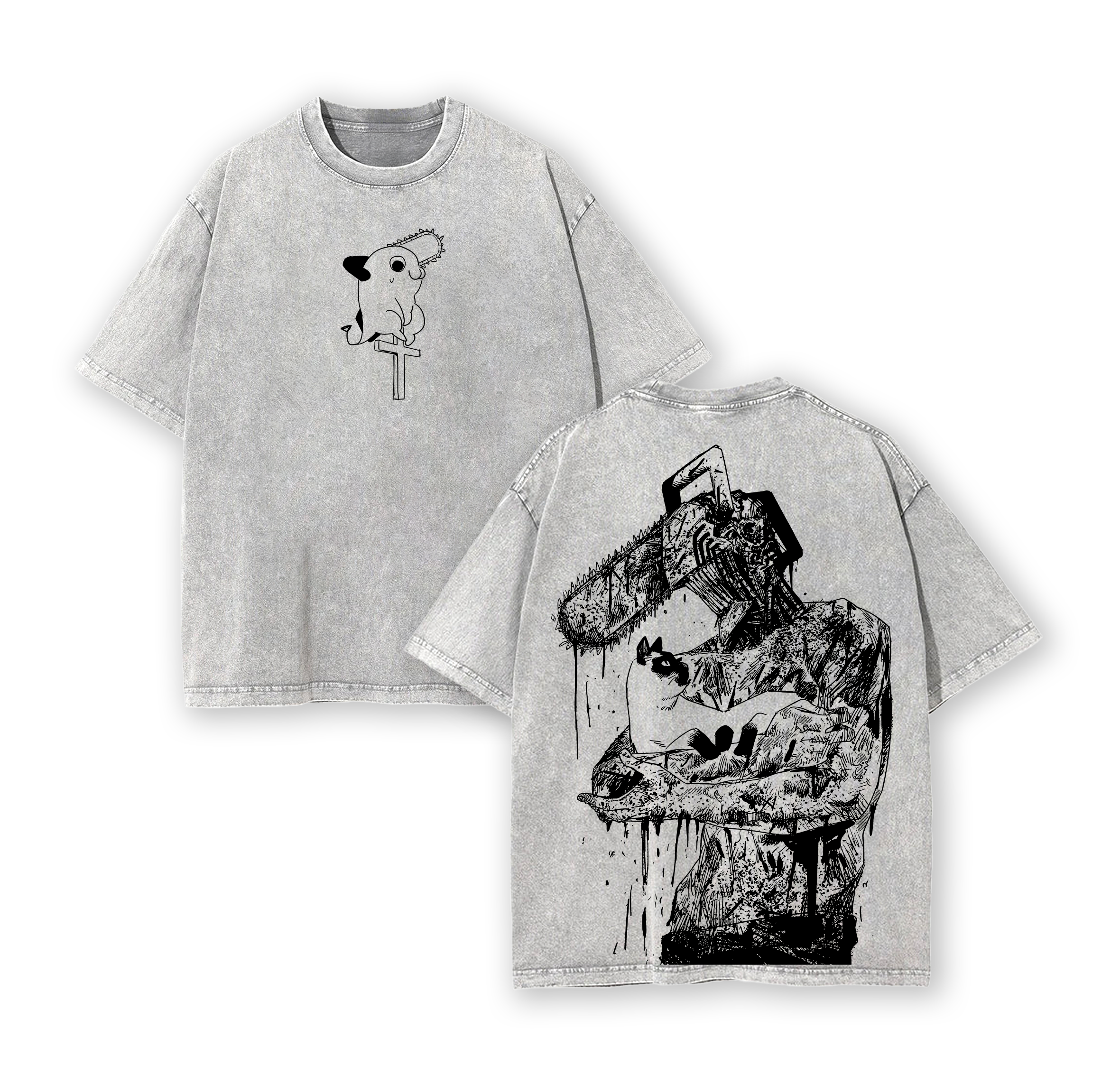 Chainsaw Man Denji Tee – Vintage Washed Heavy Cotton Oversized T-Shirt, Double Printed Anime Manga Graphic Top, Retro Unisex Streetwear for Devil Hunter Fans, Movie Inspired Edition