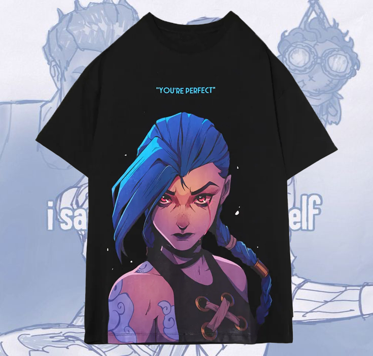 Cakkey Arcane Unisex Lol Jinx Baskılı Oversize T-Shirt