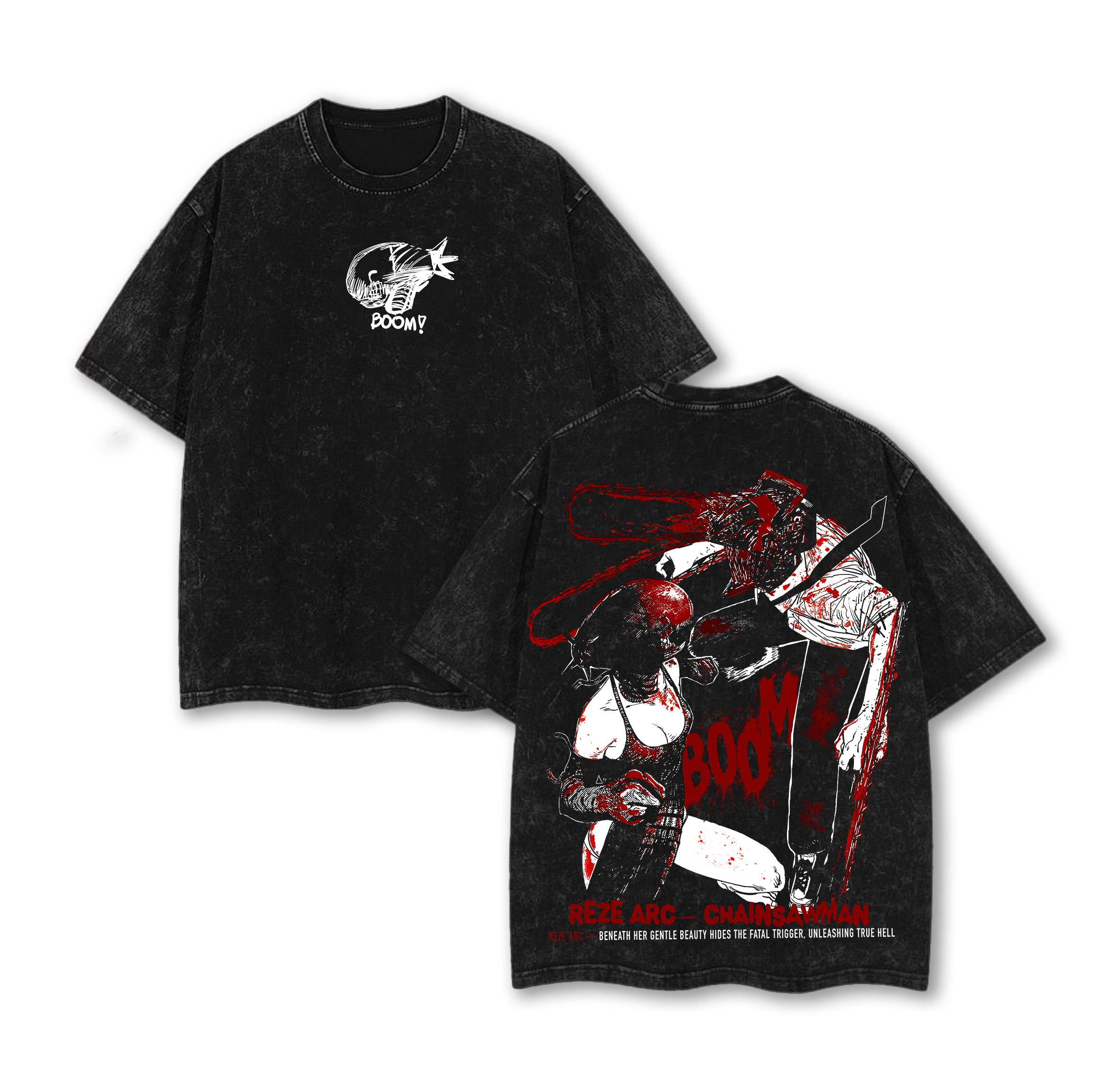 Reze vs Denji Tee – Chainsaw Man Anime Battle Vintage Oversized Washed Heavy Cotton T-Shirt