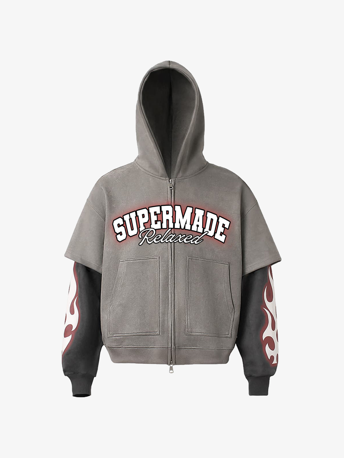 Vintage Dual-layer Collar Fleece-lined Zipper Jacket