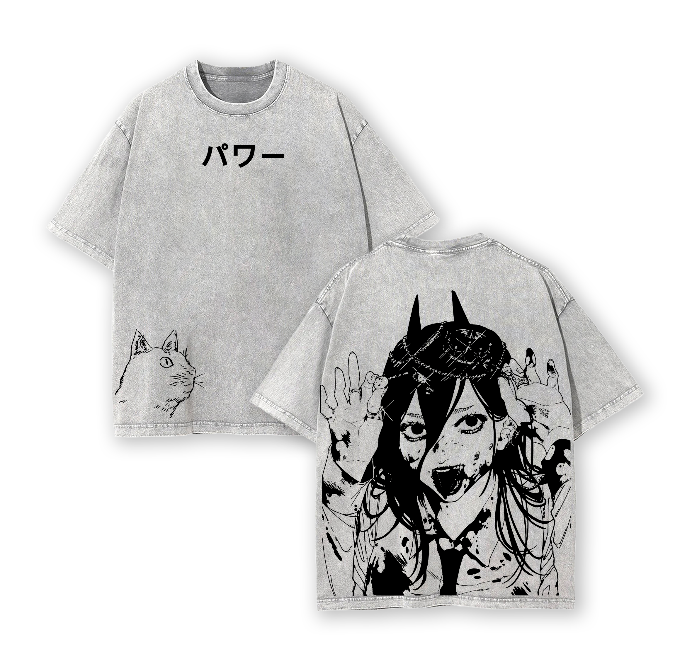 Power Chainsaw Man T-Shirt – Bloody Queen Vintage Washed Oversized Heavy Cotton Tee