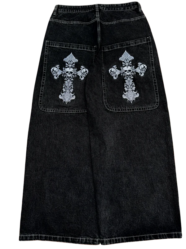 Black Wideleg GLOE Skull Cross Jeans