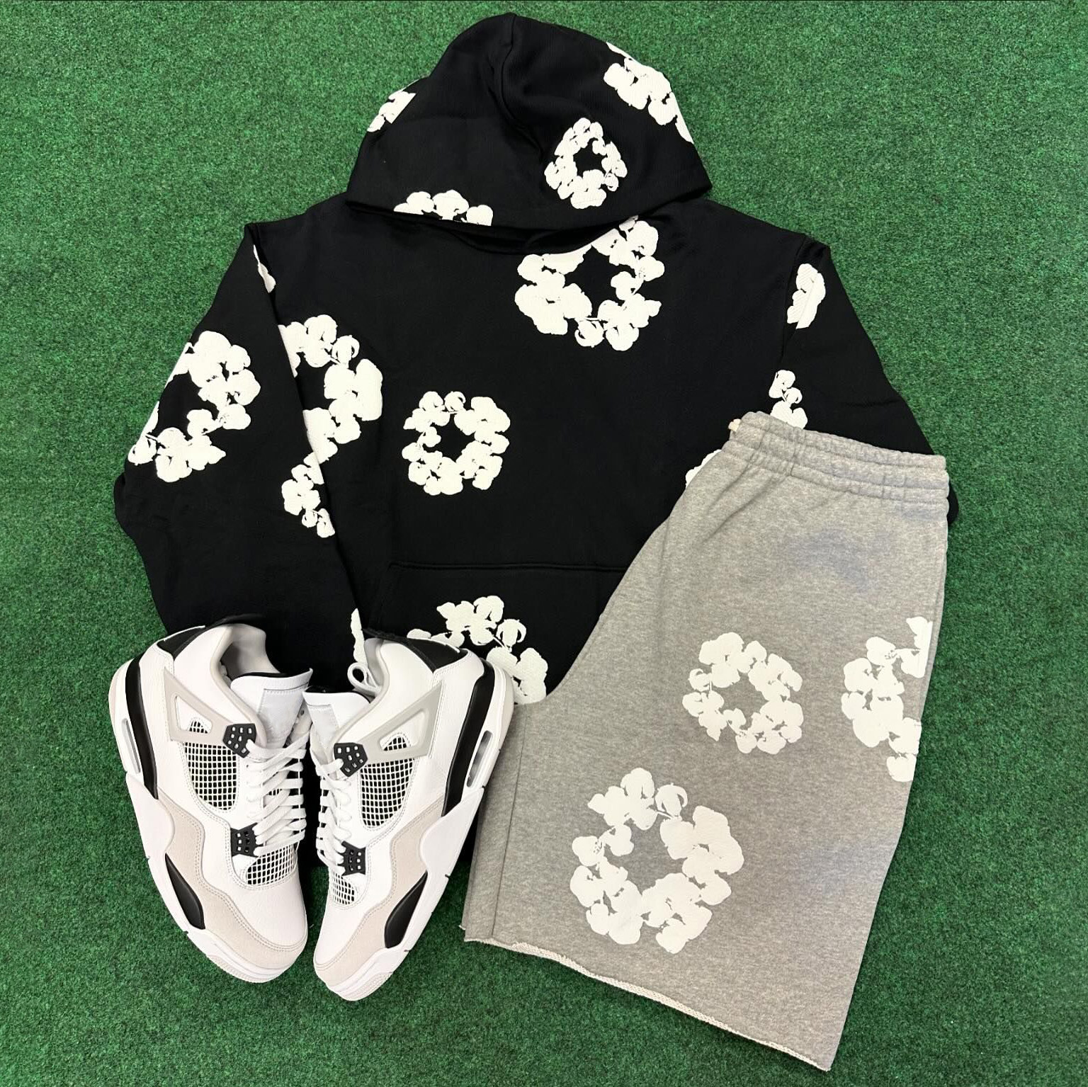 Casual street print patchwork trousers and hoodie zipper two-piece suit