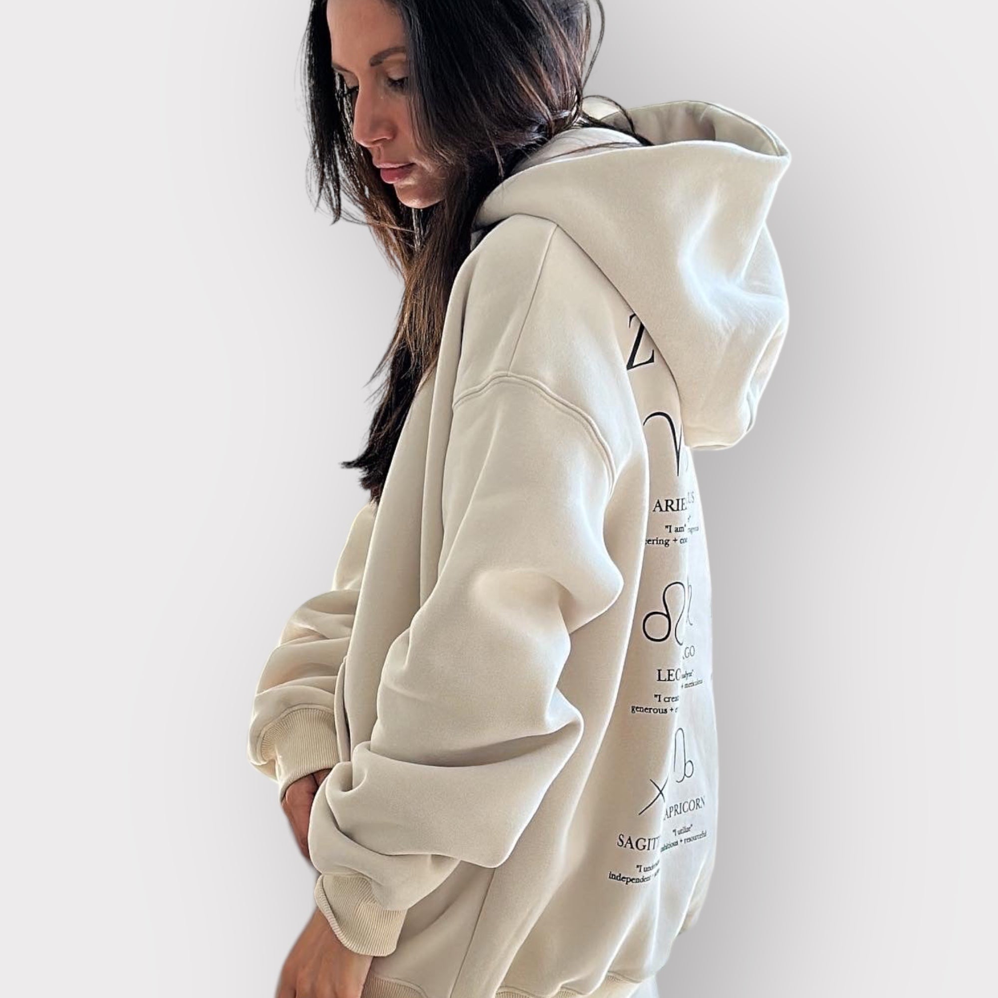 Zodiac hoodie in "tahini"