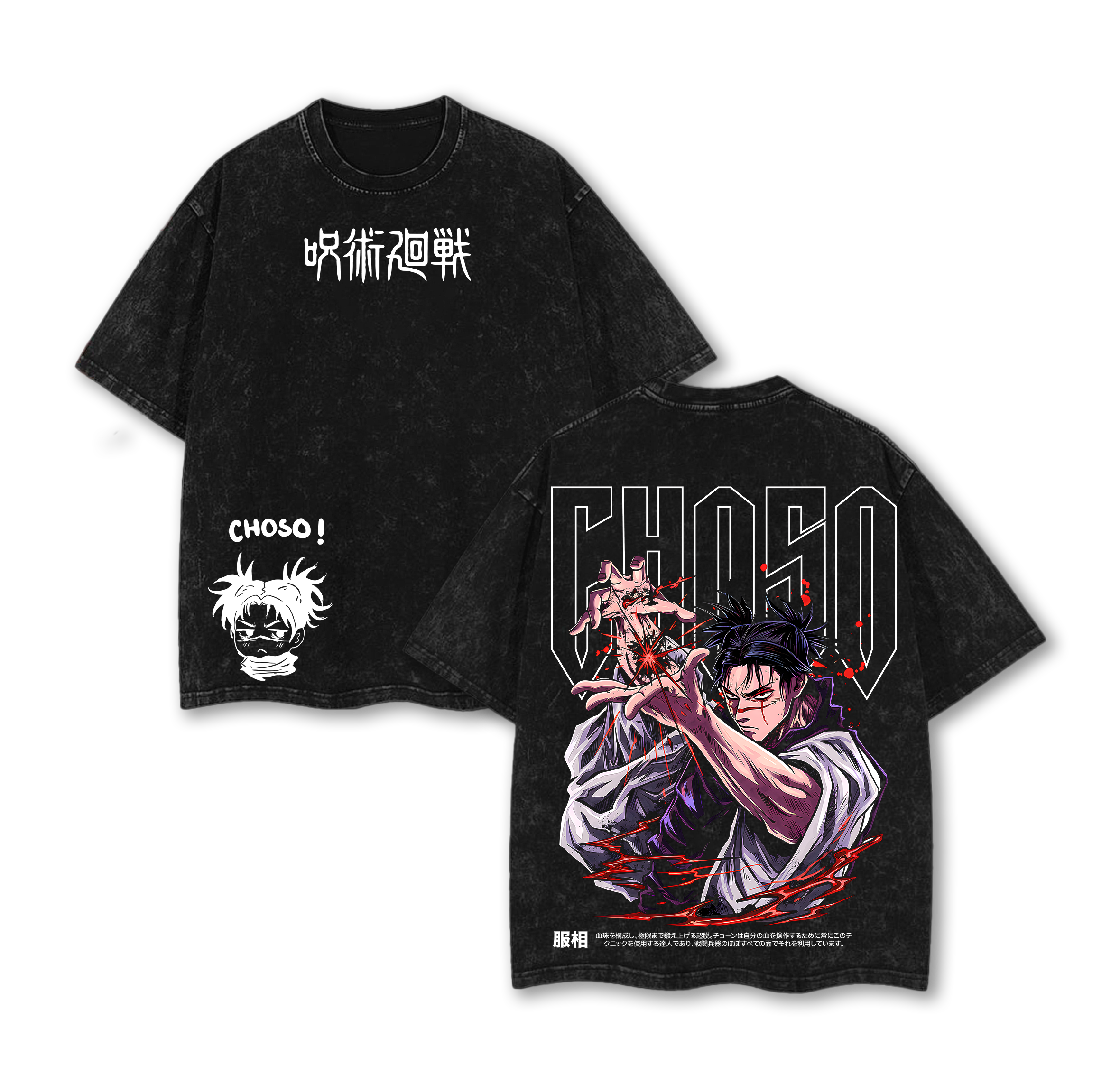 Choso Jujutsu Kaisen Anime Washed T-Shirt | Vintage Streetwear Graphic Tee with Blood Manipulation Art | Heavy Cotton Manga Top | Cool Gift for Anime & JJK Fans