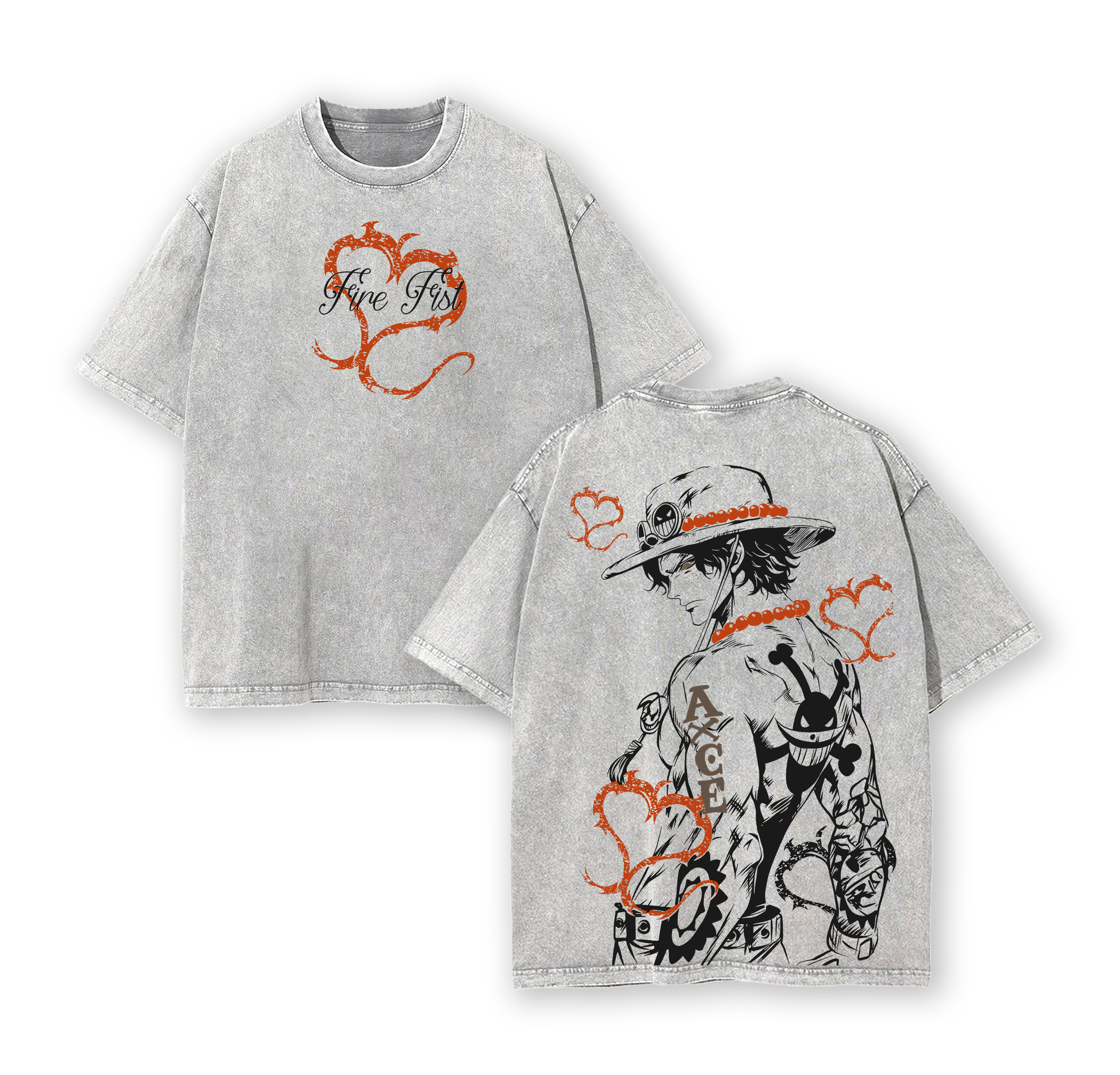 D. Ace Shirts - One Piece Anime Graphic Tee Oversized Acid Washed Soft Cotton Men T-Shirt