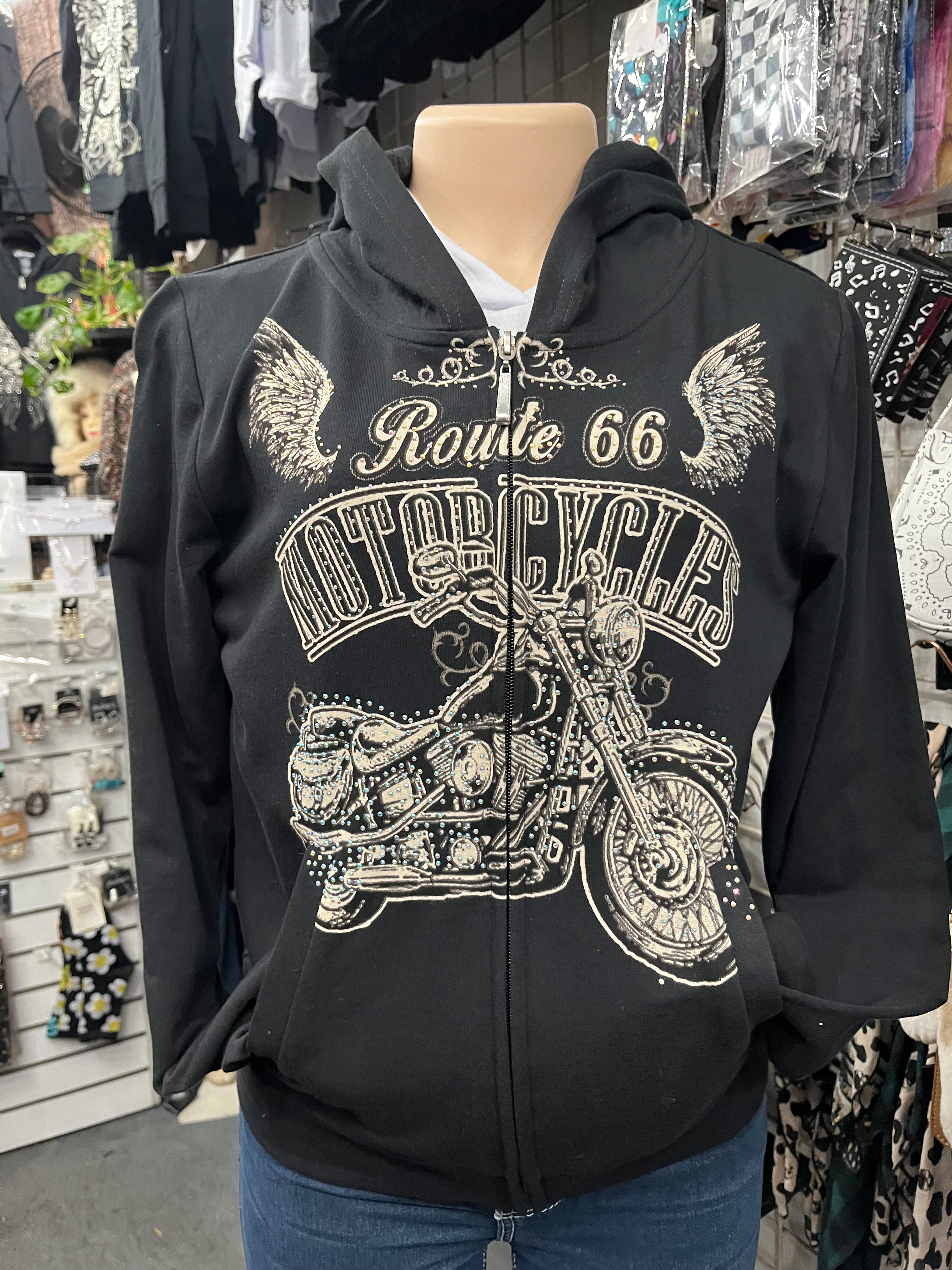 Route 66 Motorcyles Rhinestone Hoodie