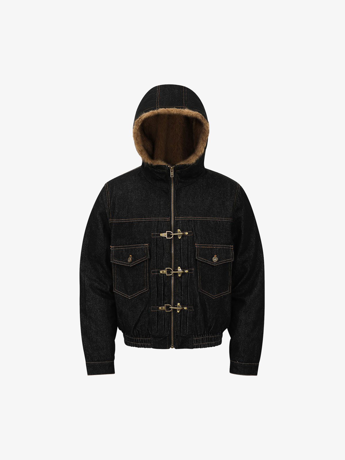 Vintage Denim Mental Buckle Faux Fur Lined Hoodie Jacket