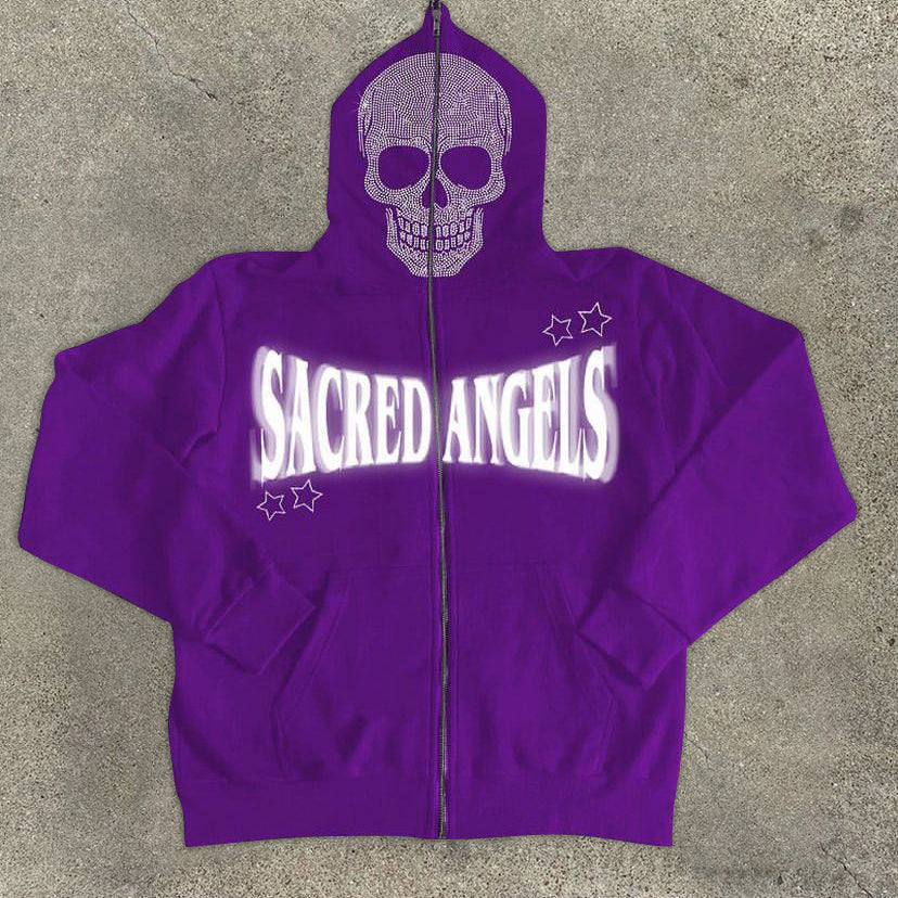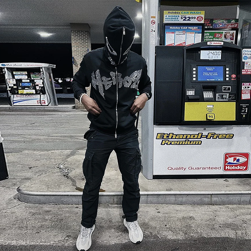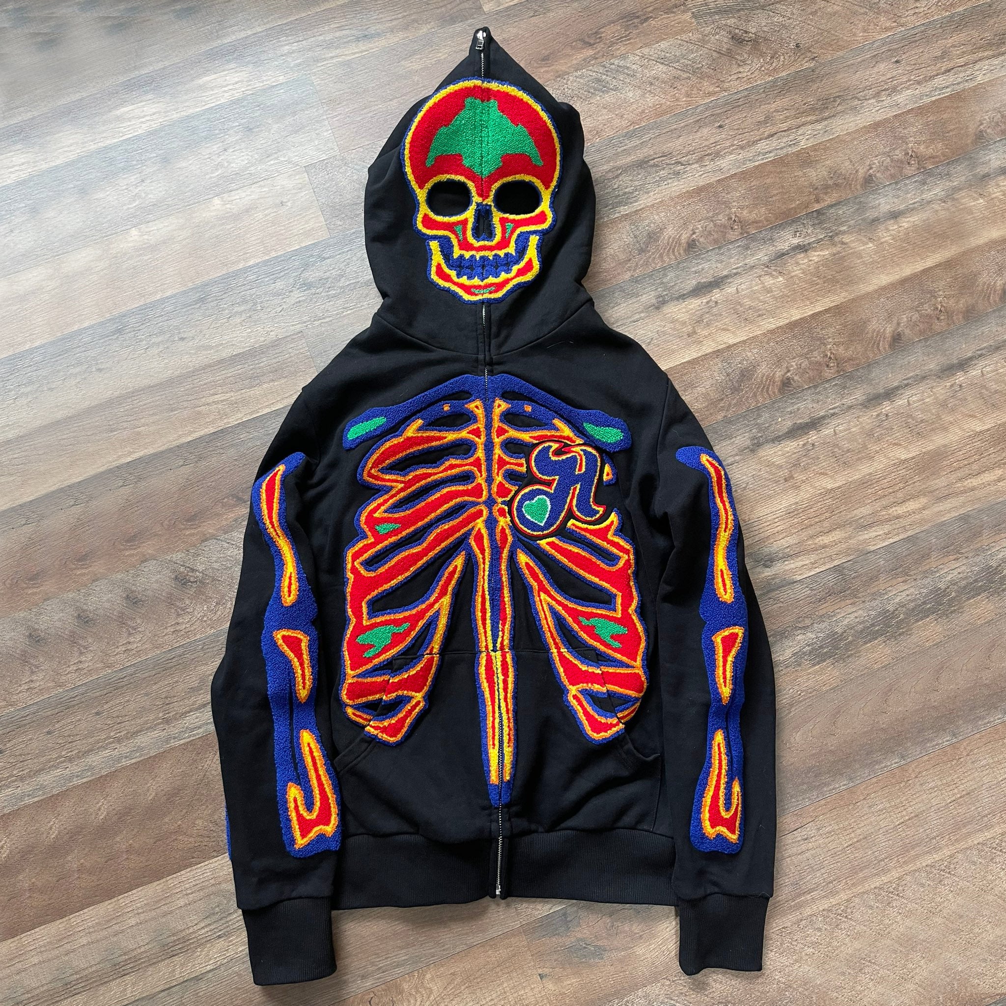 Hot Diamond Skull Zipper Mask Zip Up Hoodie