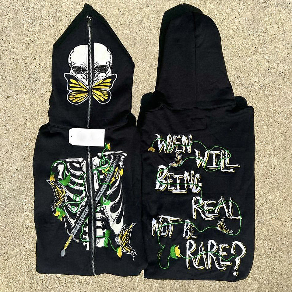 Fashion Street Print Butterfly Skull Long Sleeve Hoodie