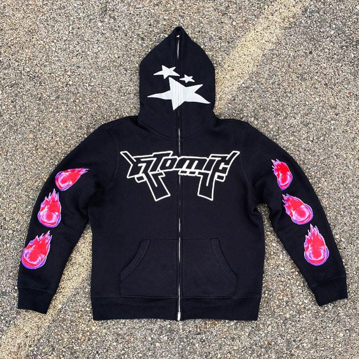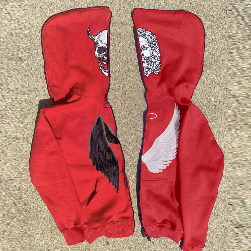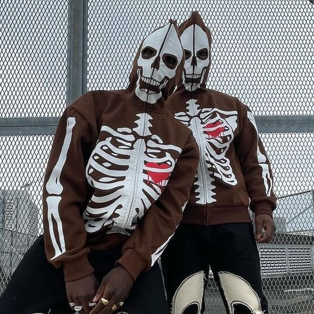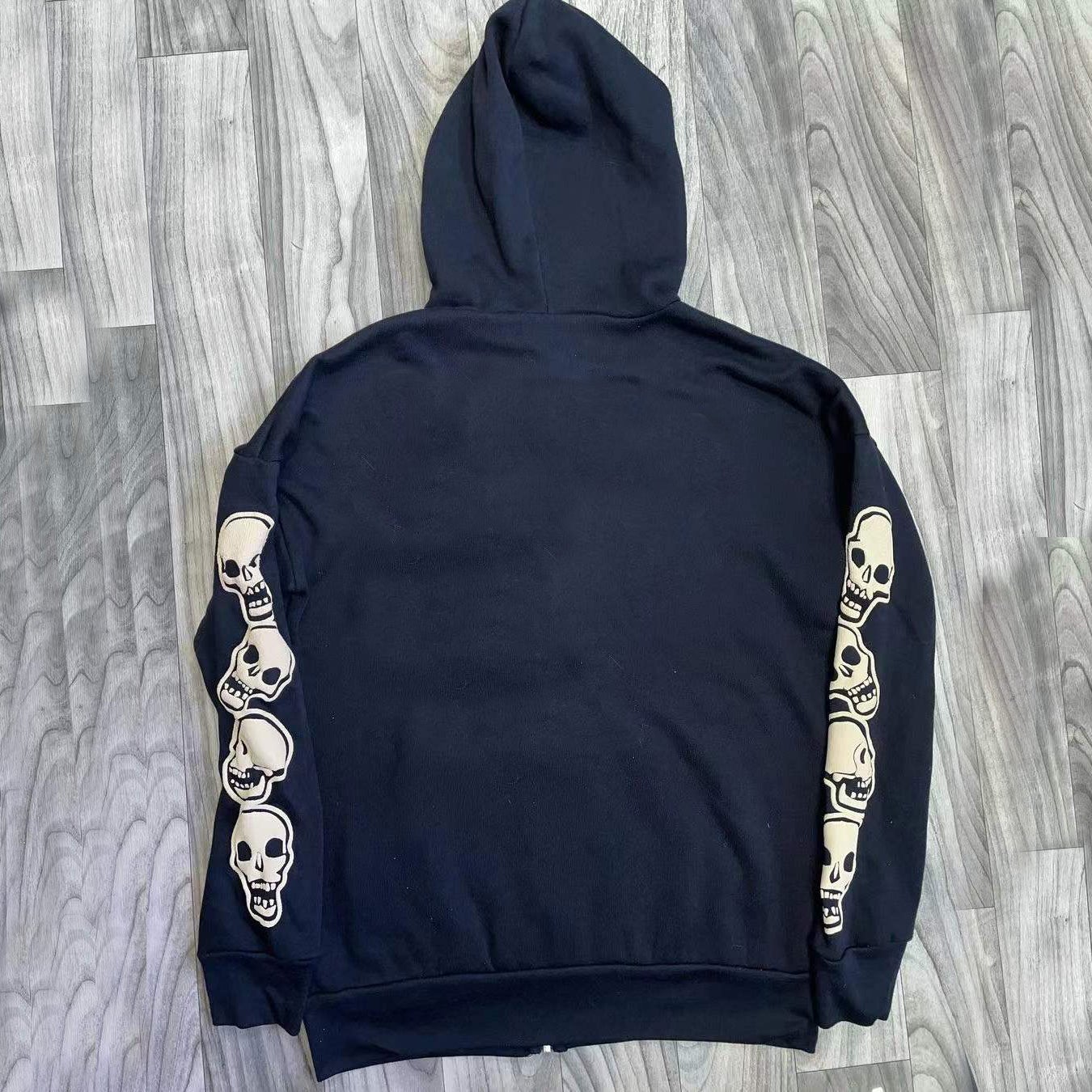 Fashion Skull Print Personality Street Style Long Sleeve Zip Sweatshirt
