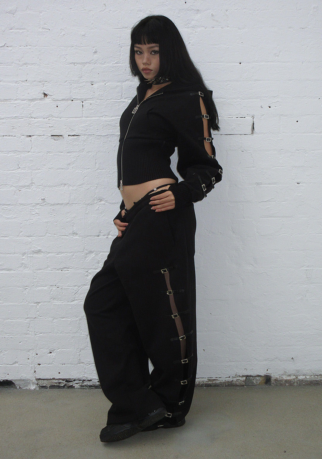 CRUSH STUDDED BELT OVERSIZED SWEATPANTS BLACK