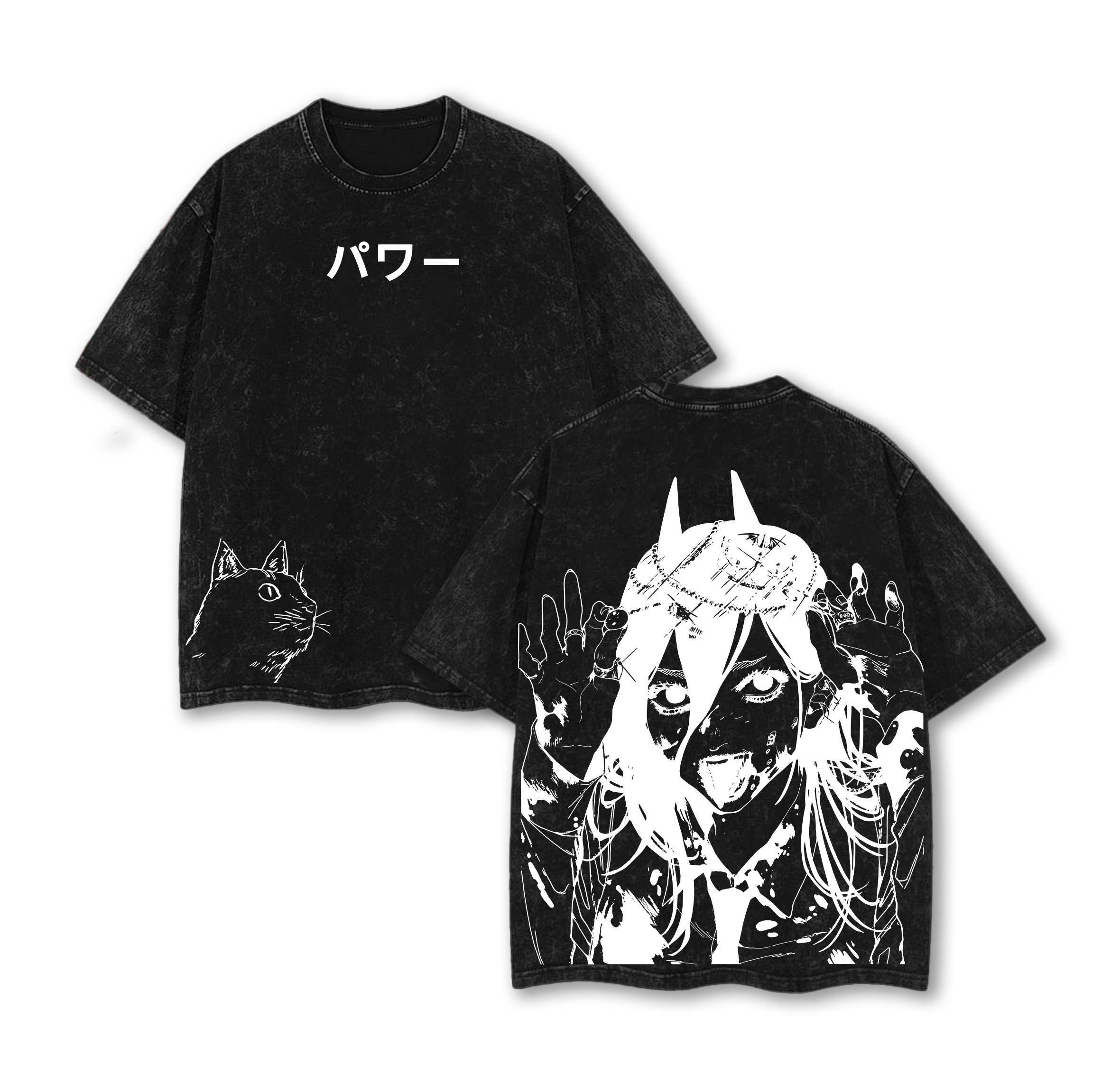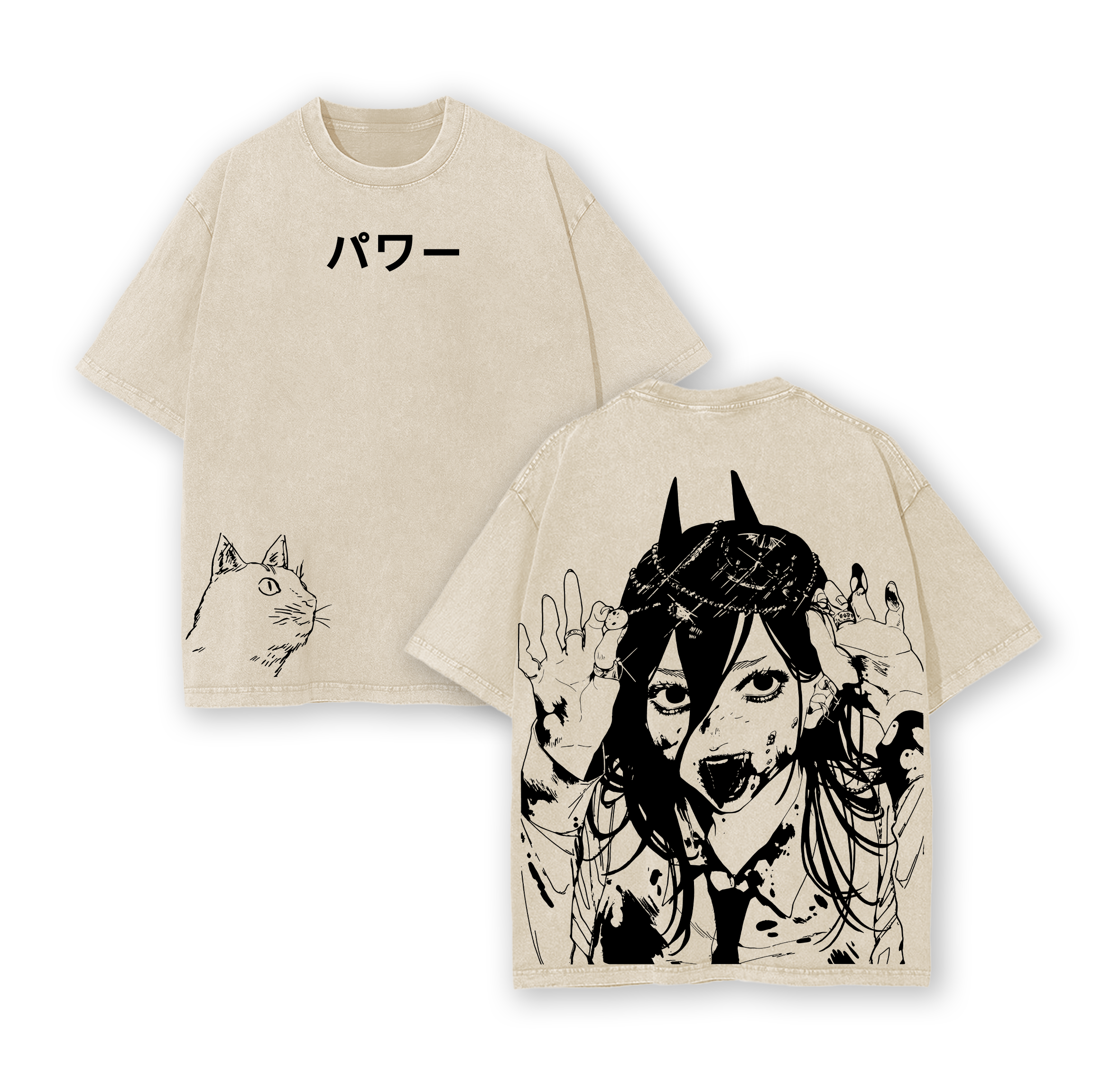 Power Chainsaw Man T-Shirt – Bloody Queen Vintage Washed Oversized Heavy Cotton Tee