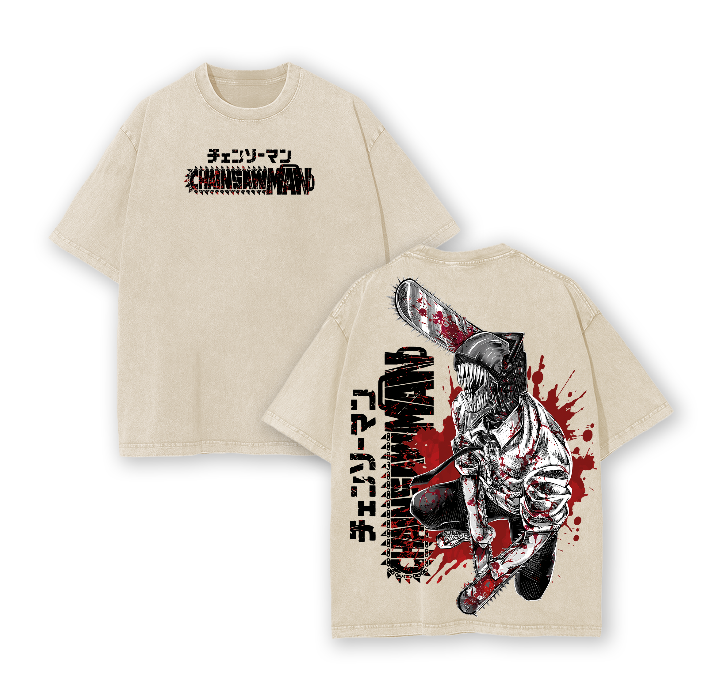 Denji Chainsaw Man Tee – Anime Vintage Washed Oversize T-Shirt
