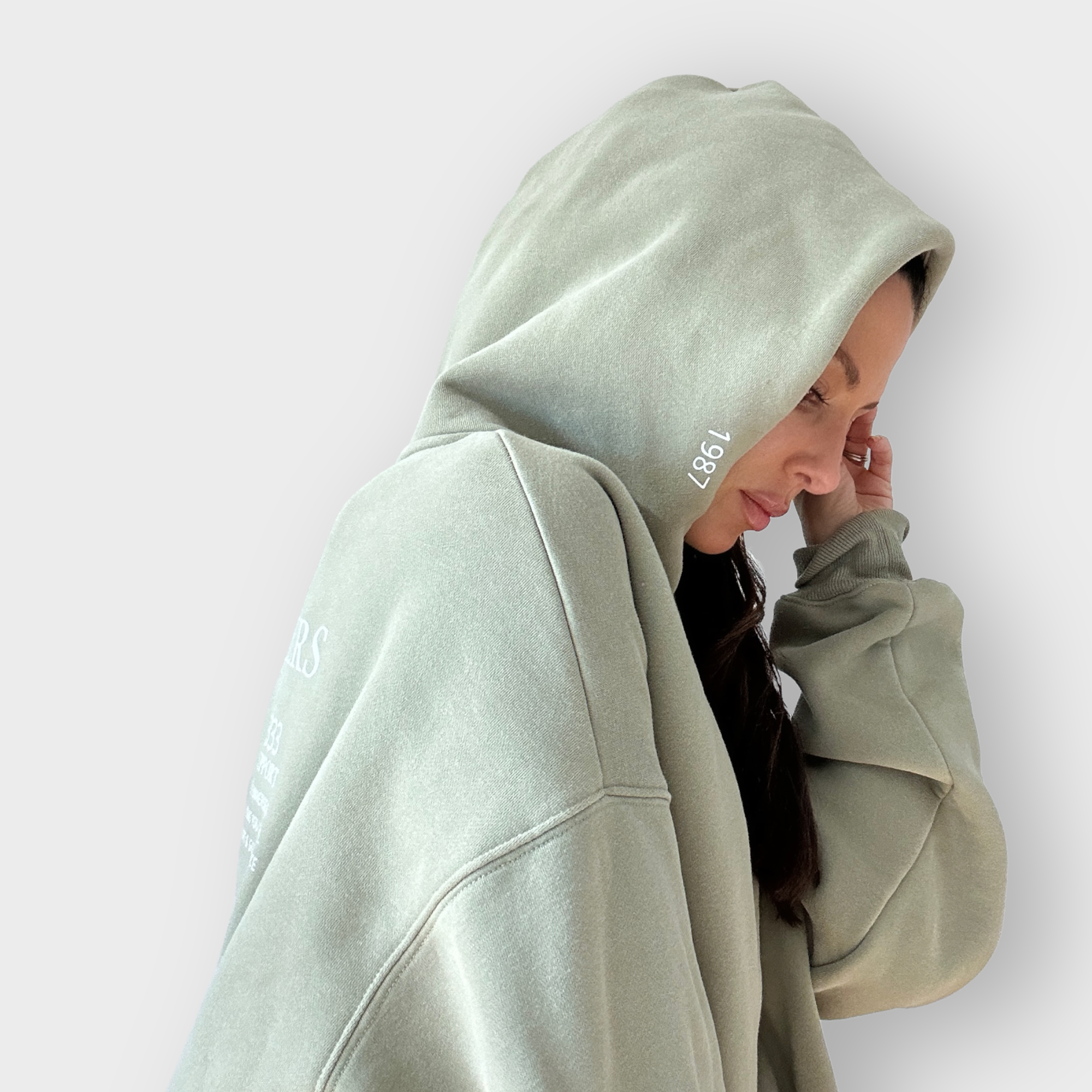 Meet, The Angel Number hoodie inspired by our founder's (@jendeangelis) last name, which means "of the angels" in Italian. This hoodie is part of our "Of the Angels" collection featuring a full angel number chart on the back of the hoodie with demure 1987 branding on the neckline of the hoodie. If you follow angel numbers you'll know that the universe speaks to you in number sequences. Each sequence takes on a special meaning such as 888 equating to abundance, ya we think you'll have some good vibes wearing this fit.