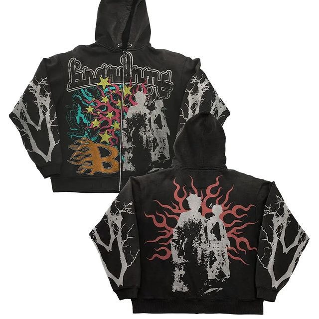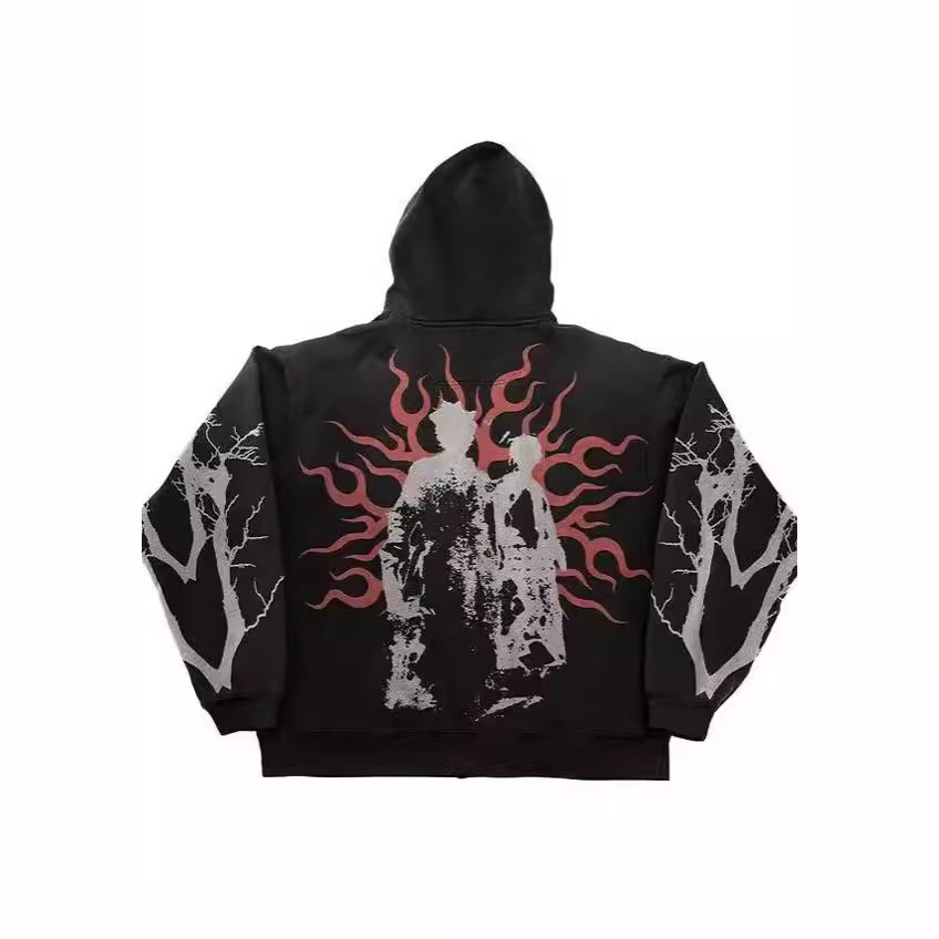 American Street Cartoon Print Vintage Ins Men's and Women's Loose Pullover Zipper Hooded Sweater