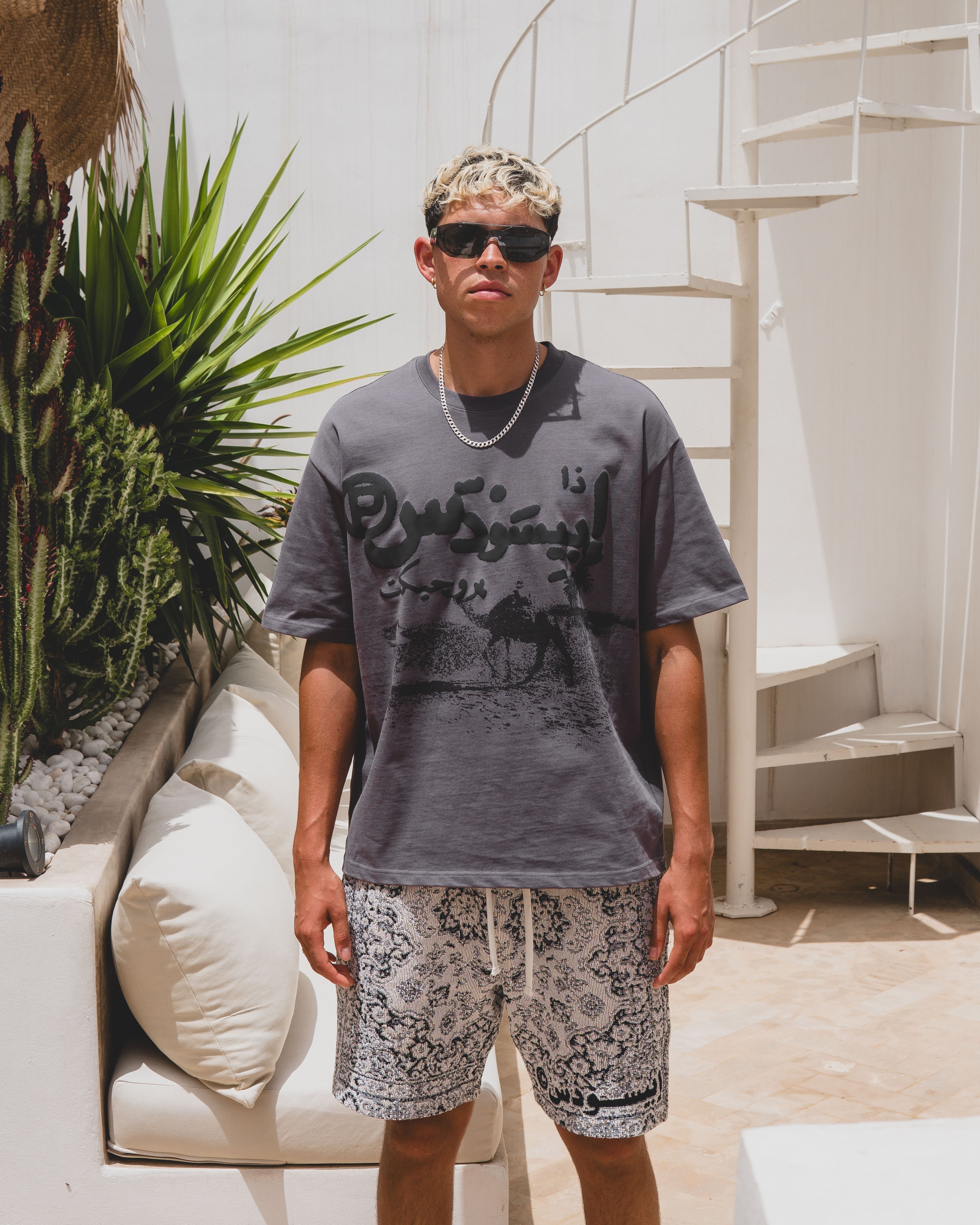 The BLAZE Puff T part of Episode 5.Designed in collaboration with Egyptian artist Mohamdy Eisa @mohamdy.psd"Blaze": The intense heat of summer. The rapid spread of fire. Inspired by the rich history and intricate designs of Arabic rugs; catching fire and turning into a global icon. History woven into every thread.