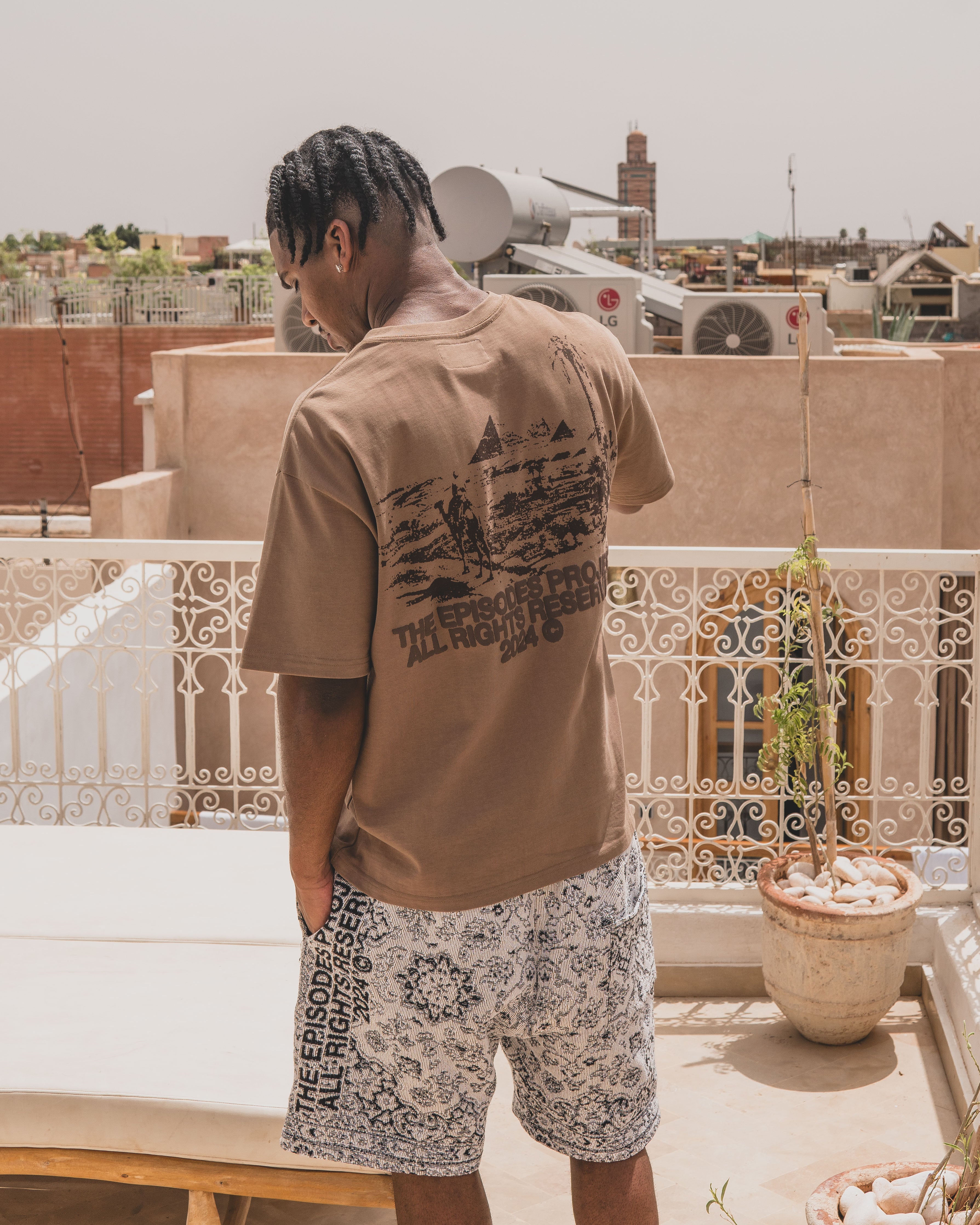 The BLAZE Puff T part of Episode 5.Designed in collaboration with Egyptian artist Mohamdy Eisa @mohamdy.psd"Blaze": The intense heat of summer. The rapid spread of fire. Inspired by the rich history and intricate designs of Arabic rugs; catching fire and turning into a global icon. History woven into every thread.