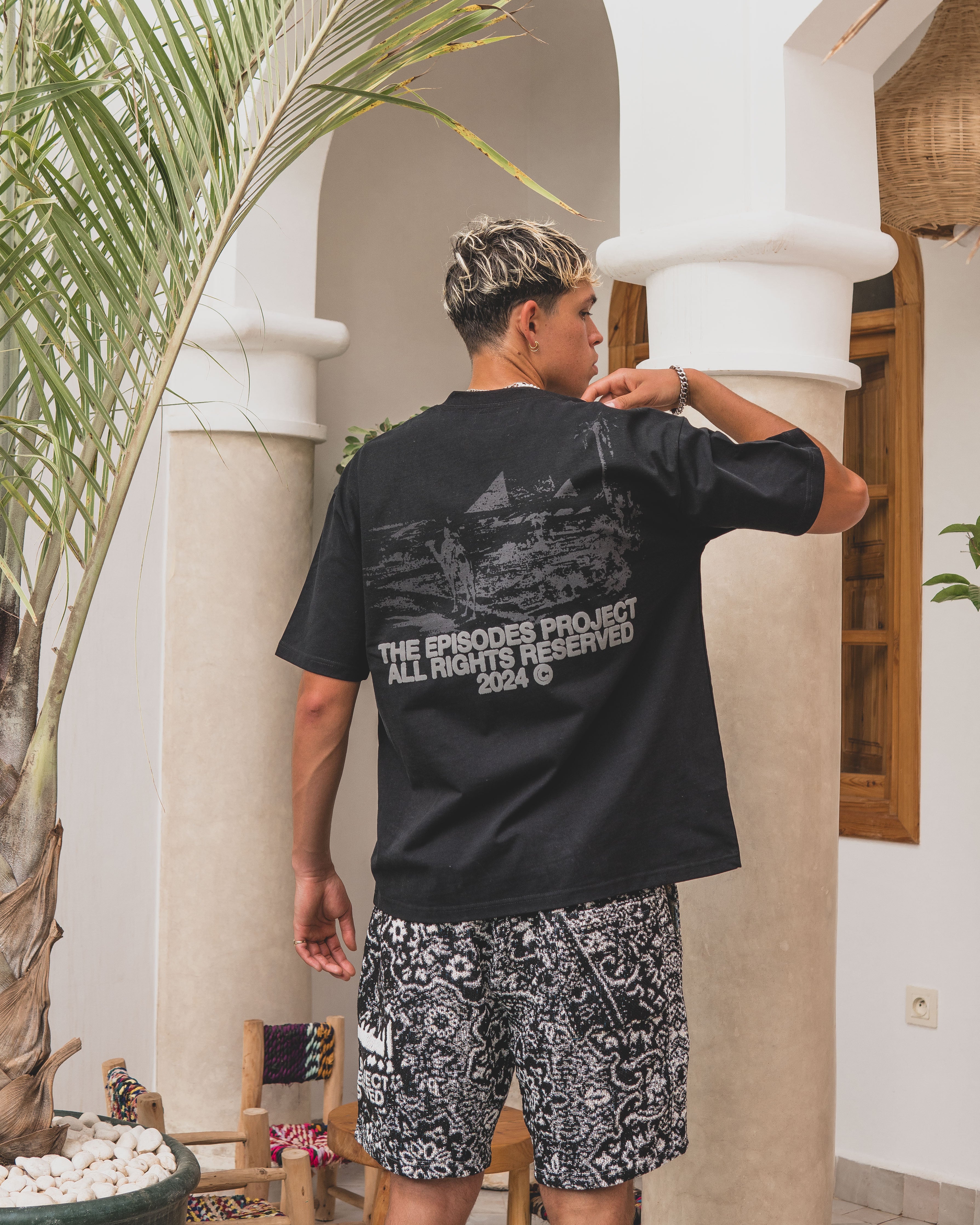 The BLAZE Puff T part of Episode 5.Designed in collaboration with Egyptian artist Mohamdy Eisa @mohamdy.psd"Blaze": The intense heat of summer. The rapid spread of fire. Inspired by the rich history and intricate designs of Arabic rugs; catching fire and turning into a global icon. History woven into every thread.
