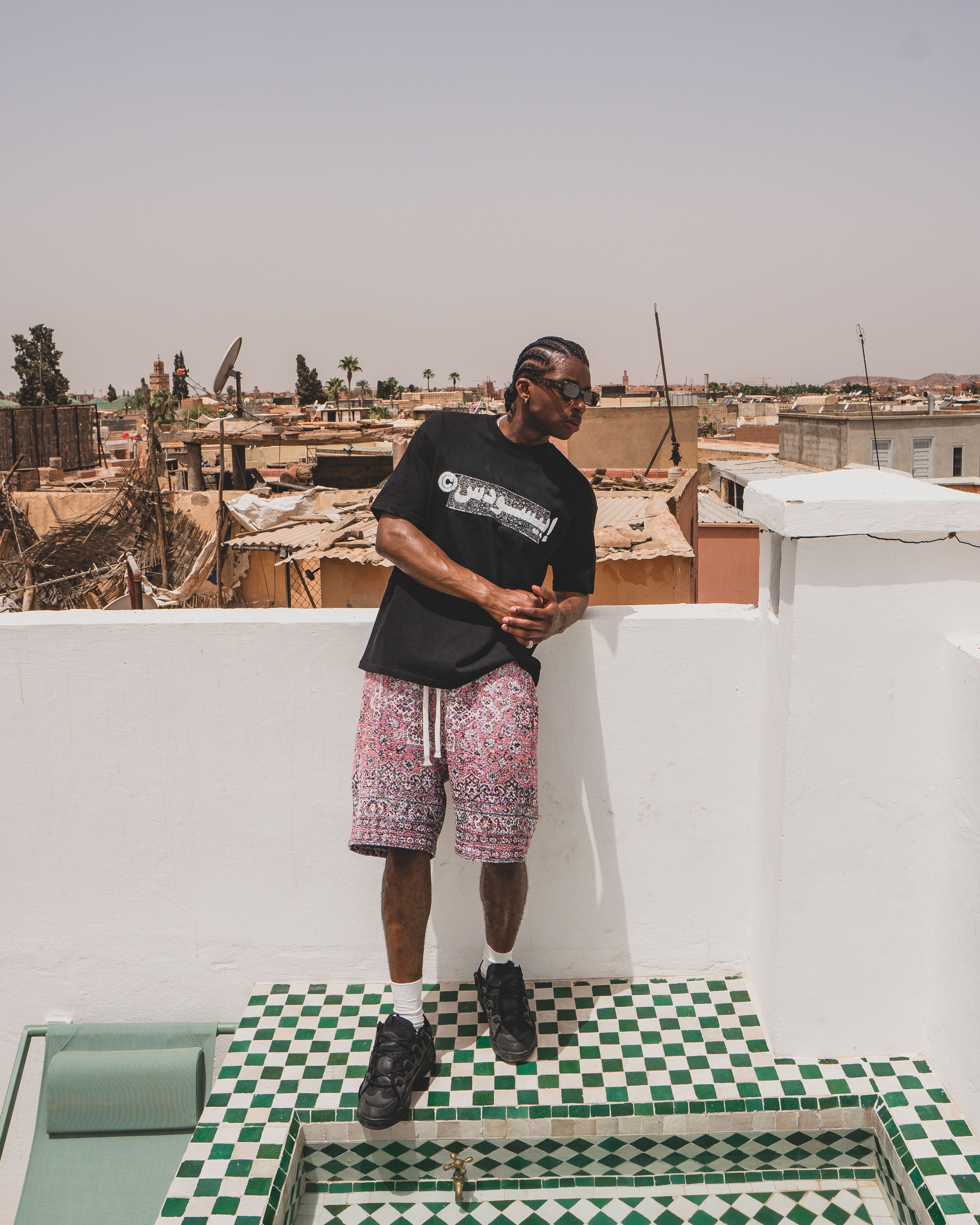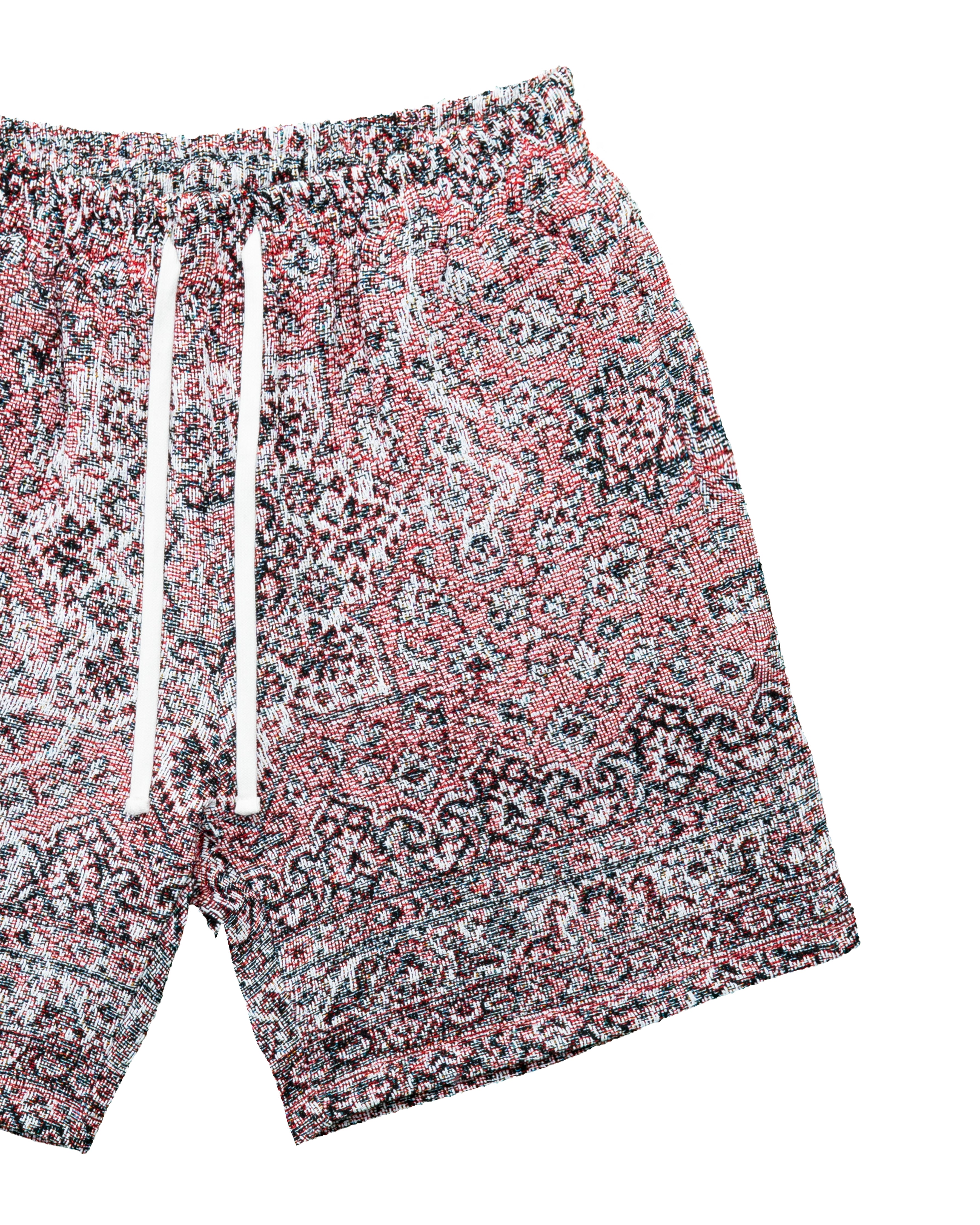 The BLAZE Tapestry Shorts part of Episode 5.Designed in collaboration with Egyptian artist Mohamdy Eisa @mohamdy.psd"Blaze": The intense heat of summer. The rapid spread of fire. Inspired by the rich history and intricate designs of Arabic rugs; catching fire and turning into a global icon. History woven into every thread.
