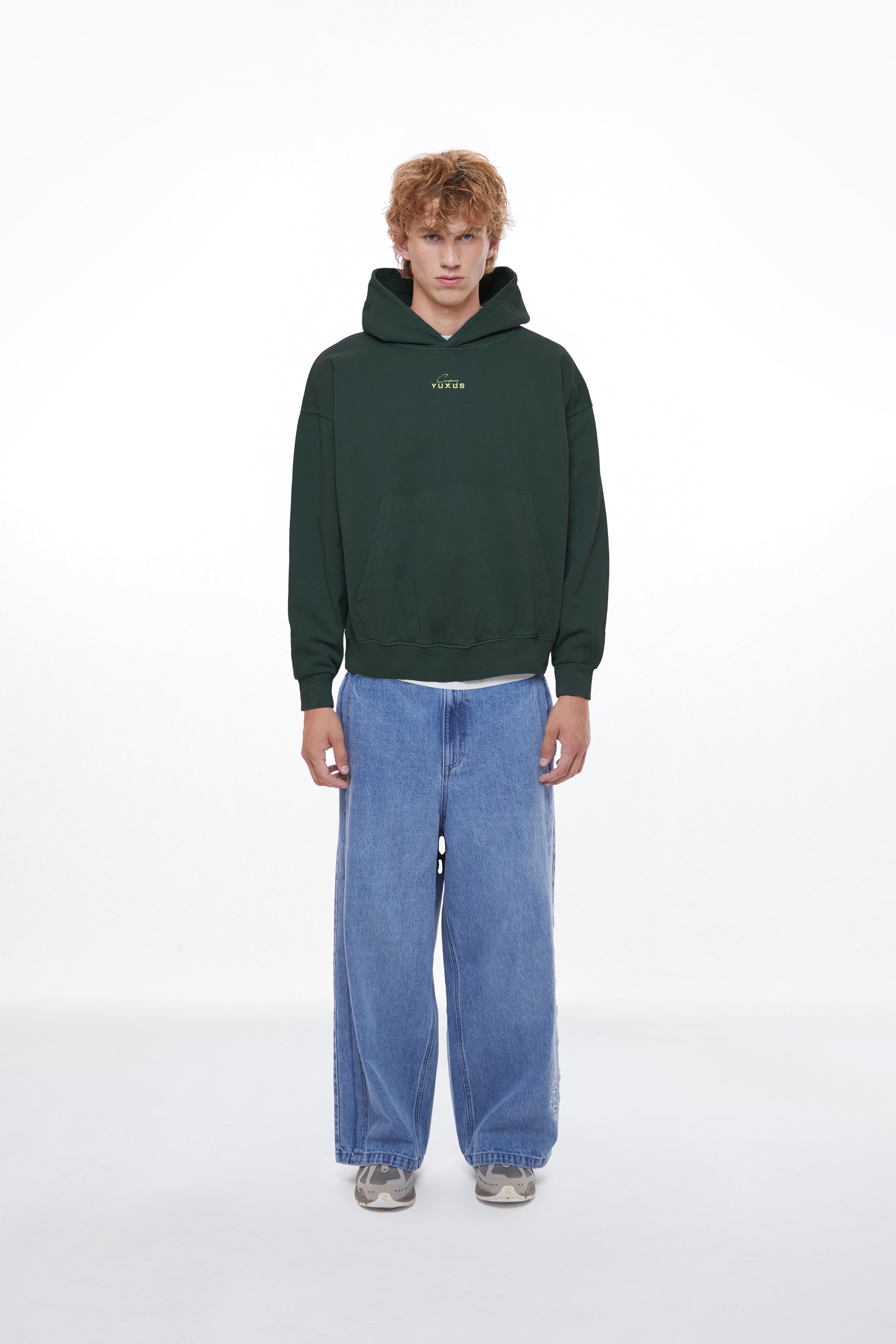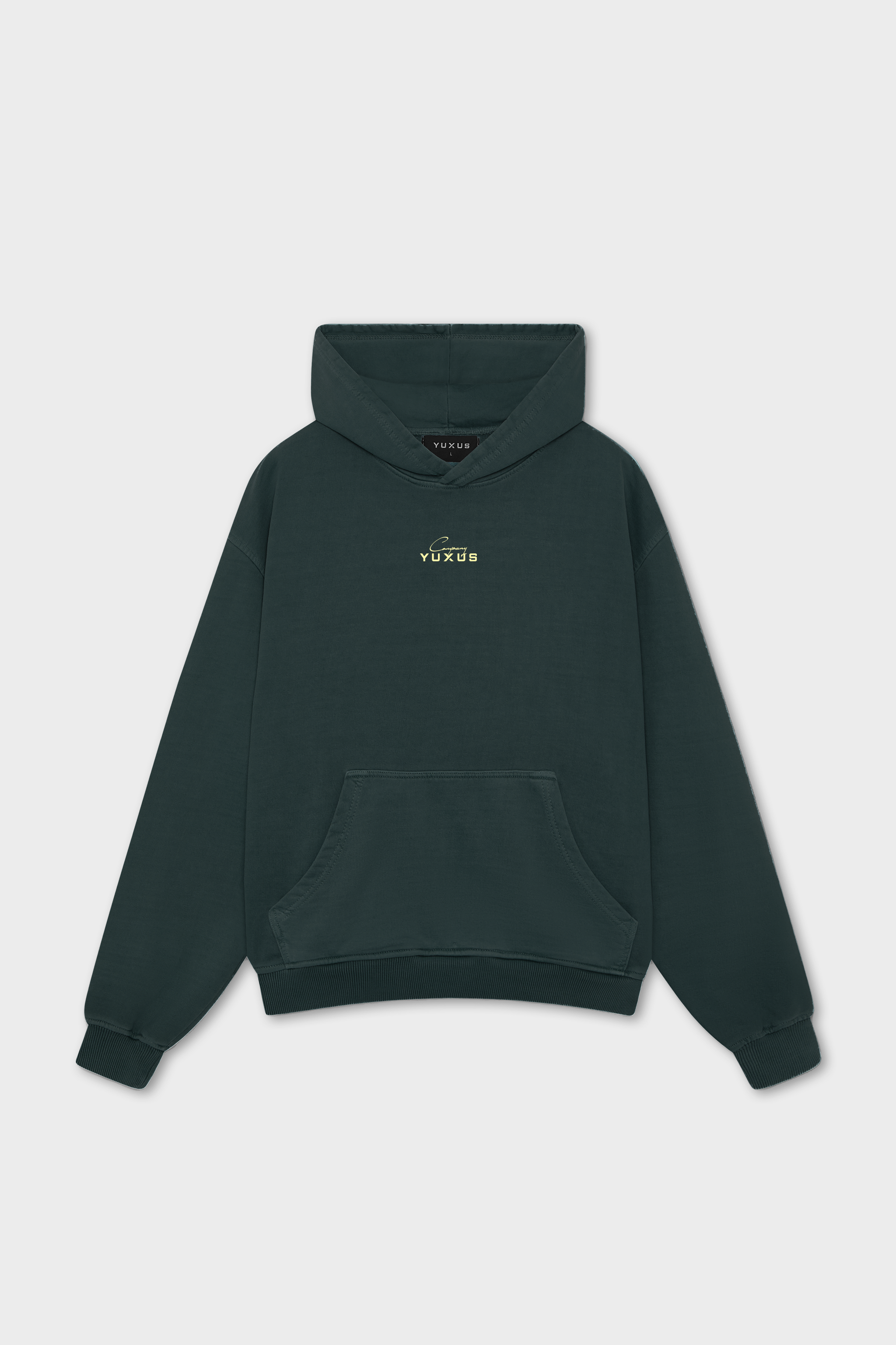 Introducing the Patterns hoodie in dark green colour, a piece conceived to portray strength and balance while establishing a global vision. Designed in line with Seoul's contemporary aesthetics and the phosphorescent colors that specially represent the heart of South Korea’s capital.