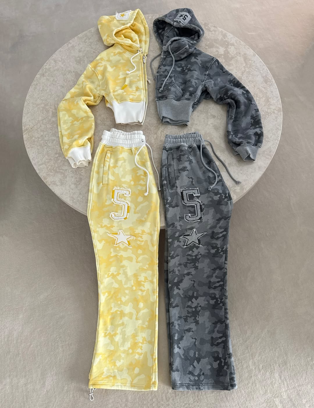 Designed for those who move through the city like it's their battlefield. The Camo Suit is a two-piece set that blends tactical inspiration with streetwear silhouette. Whether you're layering up for the season or making a solo statement, this set delivers structure, function, and style in one bold look.