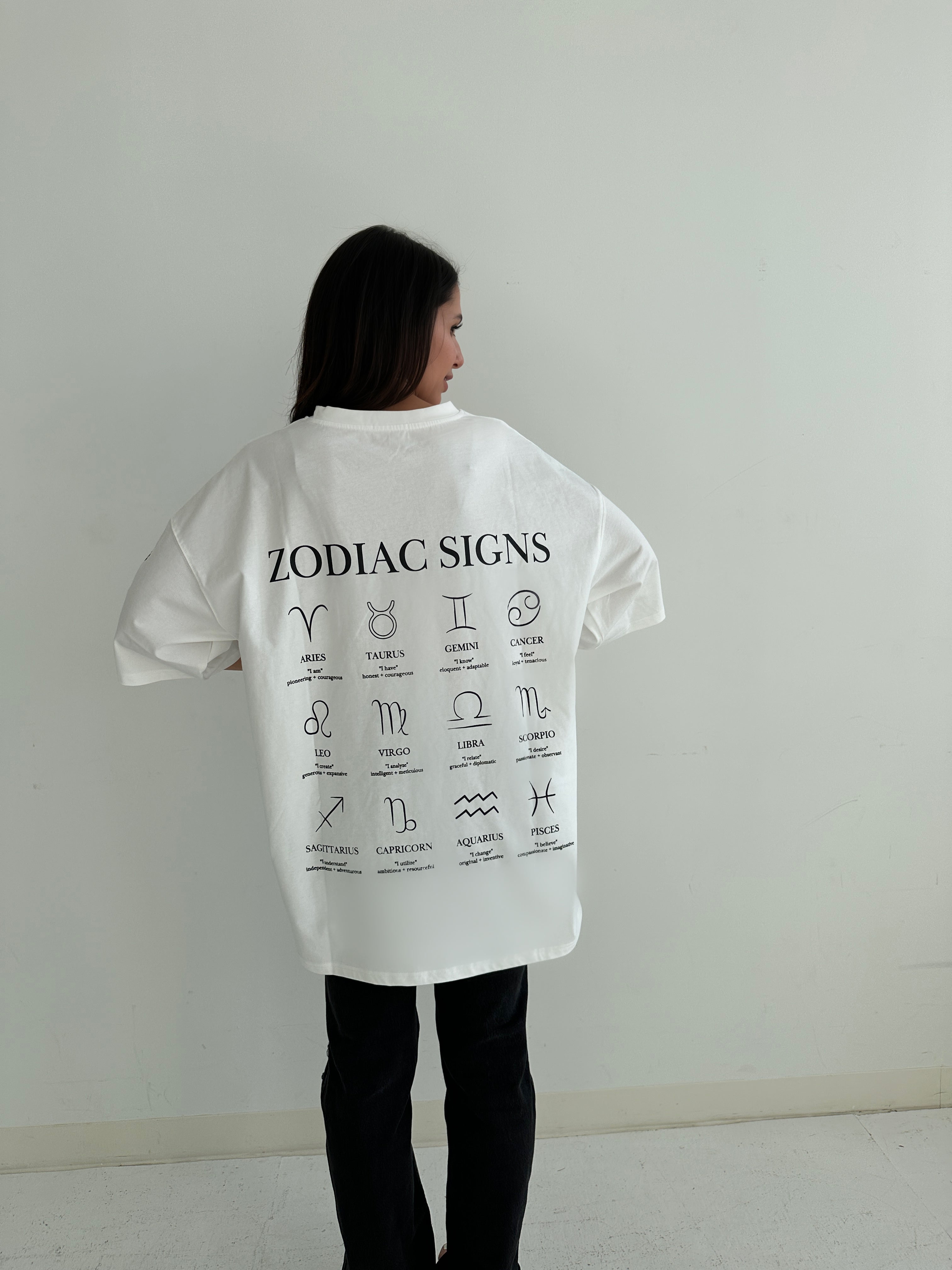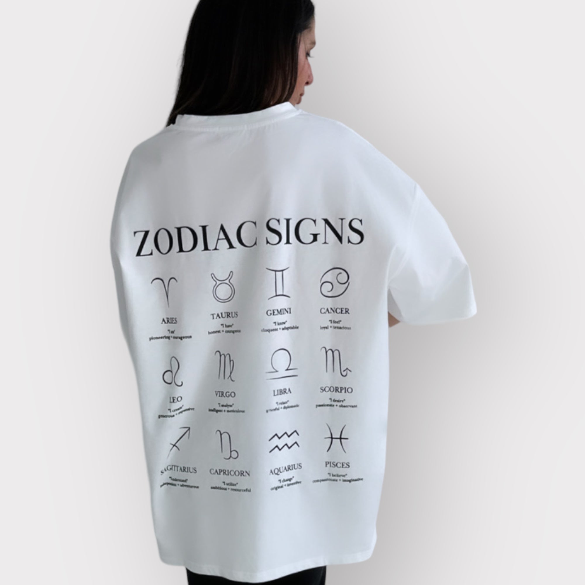 Meet, The Zodiac tee inspired by our love for all things sun, moon, and rising. If you love astrology this tee is a MUST with a full zodiac chart on the back.