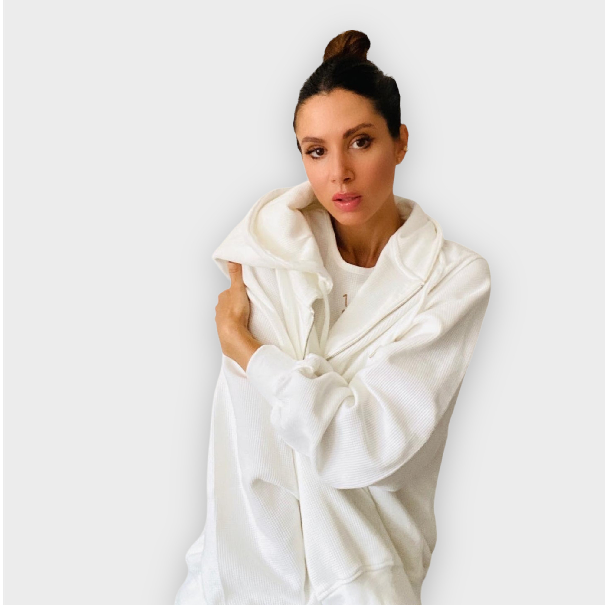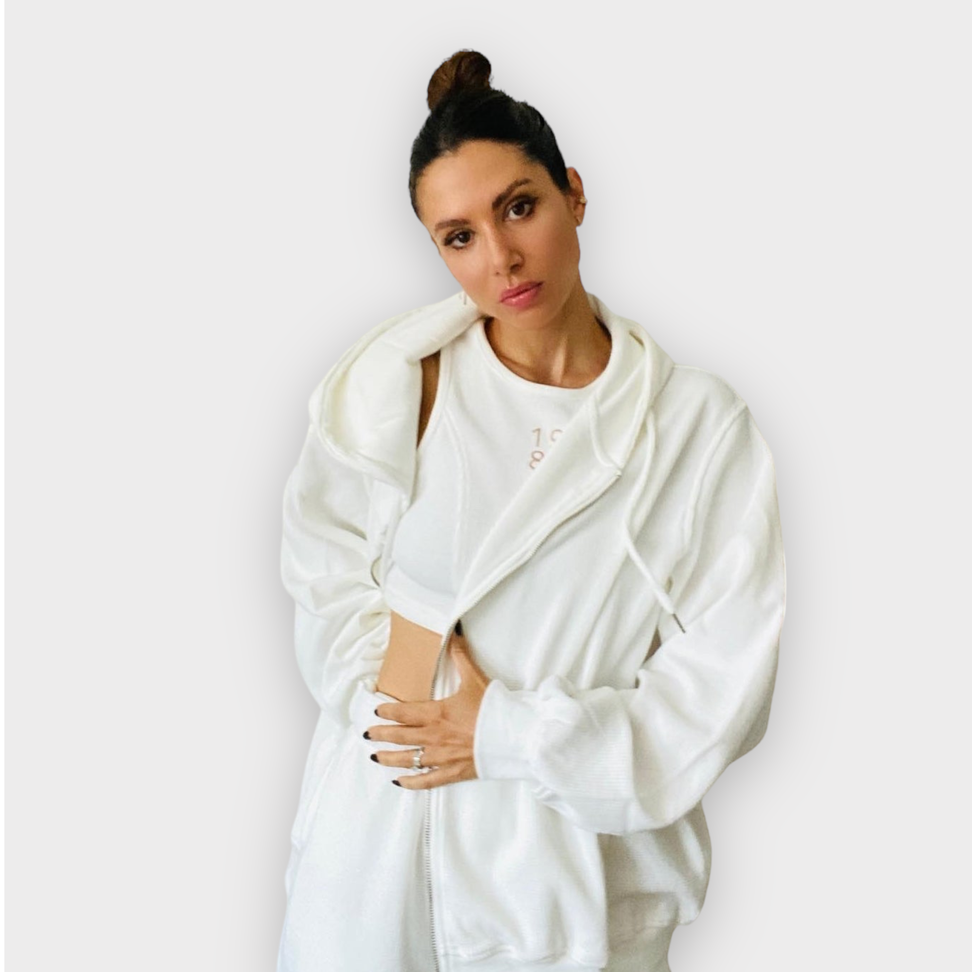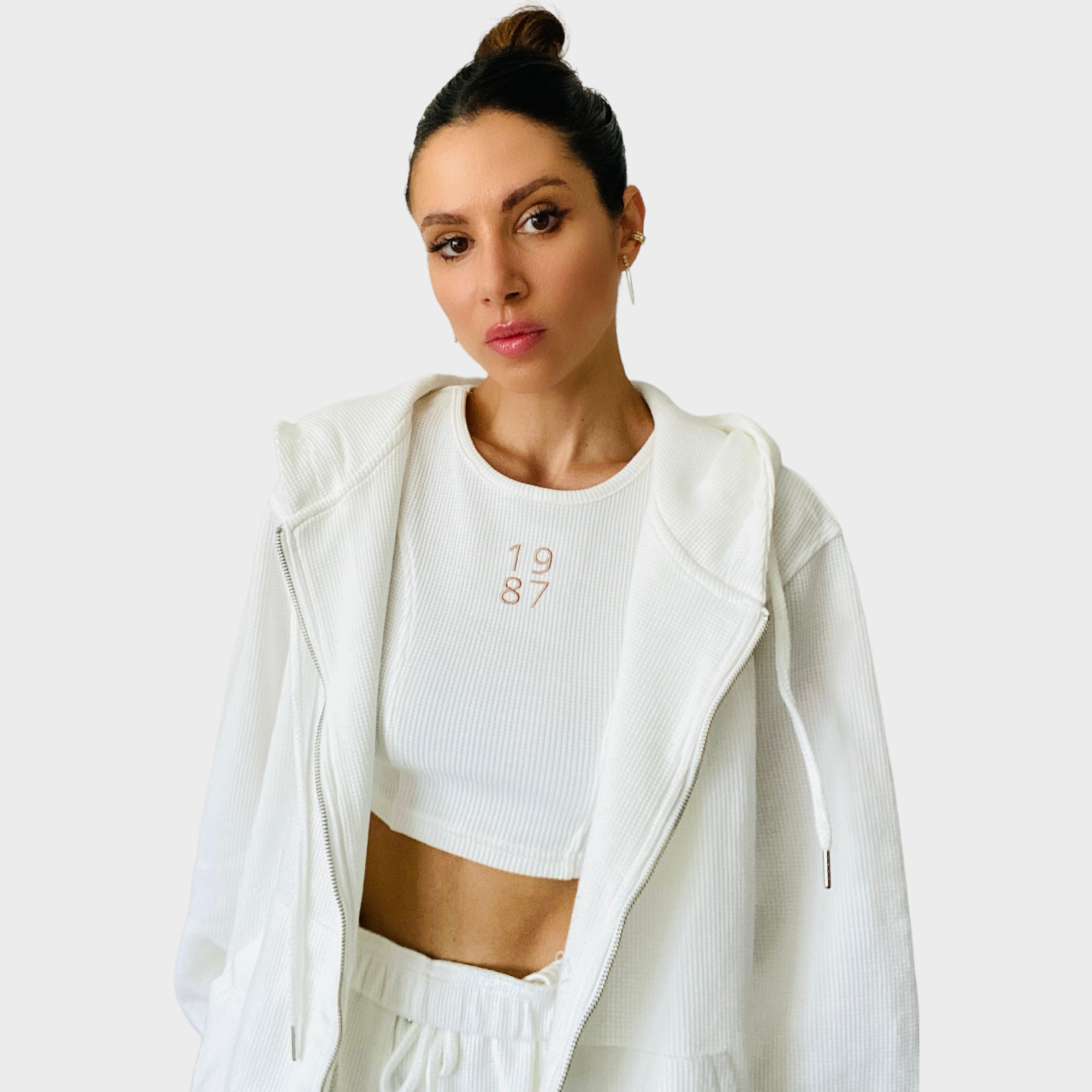 This is our FIRST zip up, ya we can't believe that either. Oversized in nature, it's perfect to wear with the matching jogger and crop or just with jean shorts and a tee for a casual summertime look.