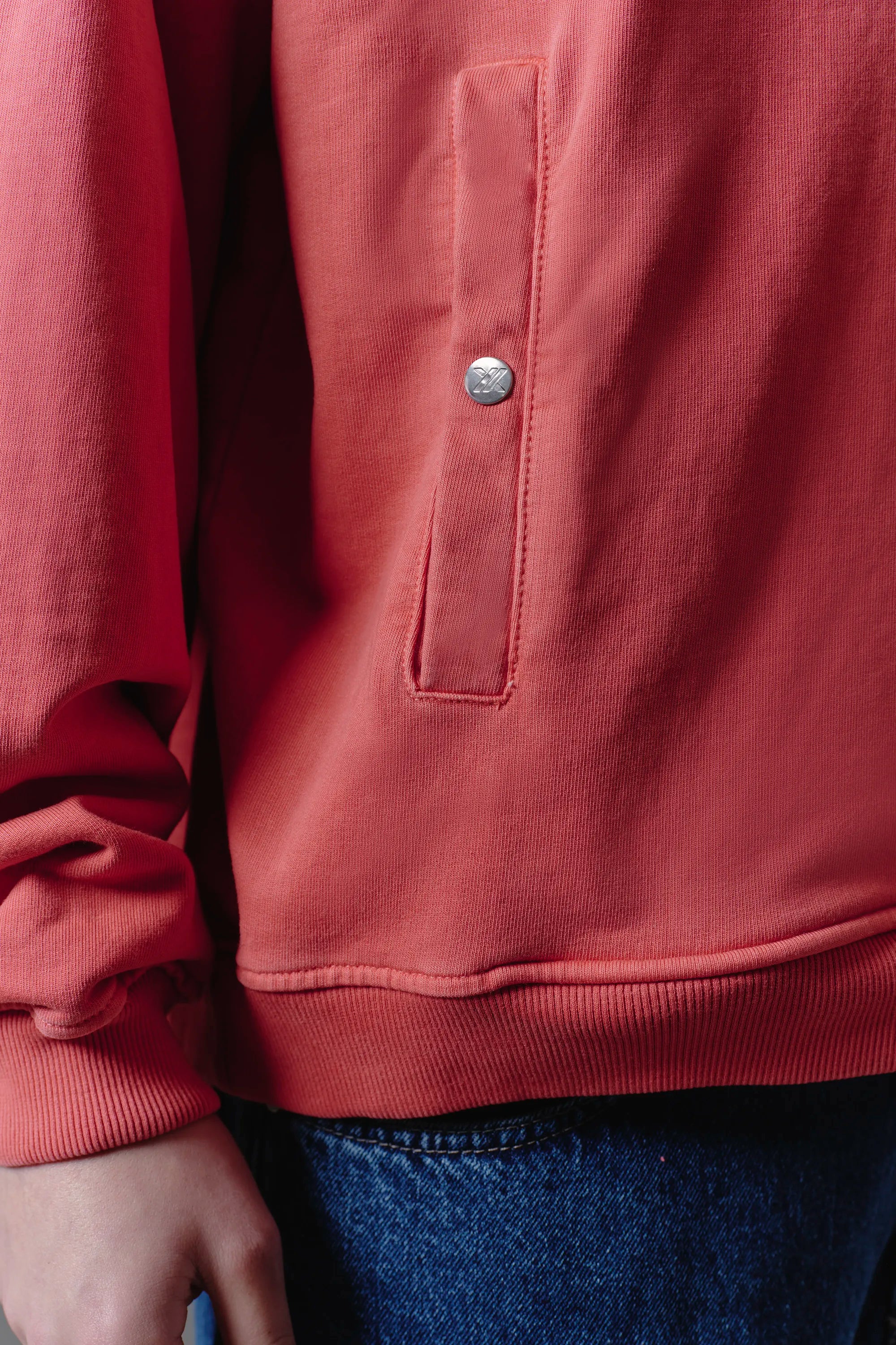 - Metal buttons on the pocket
