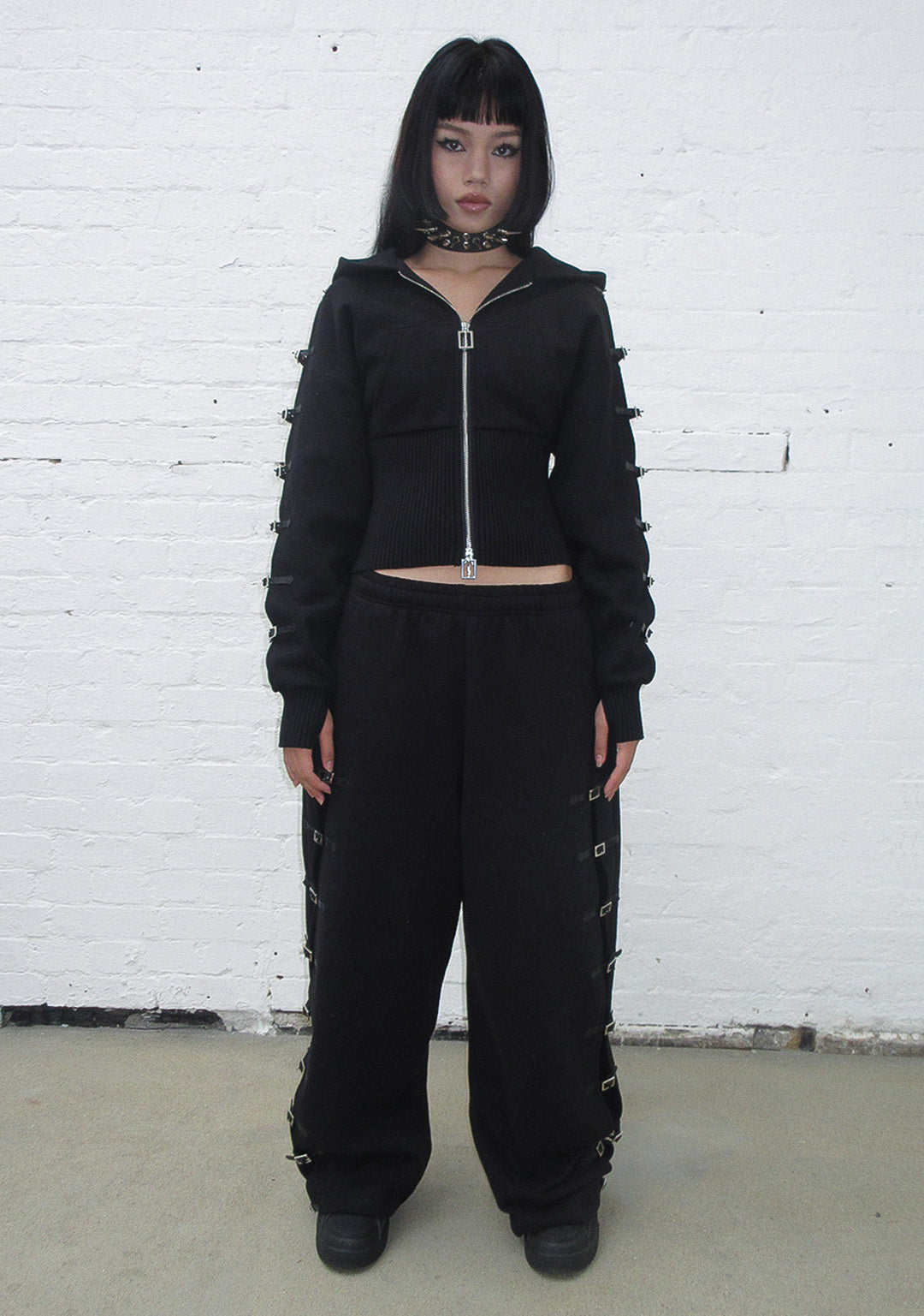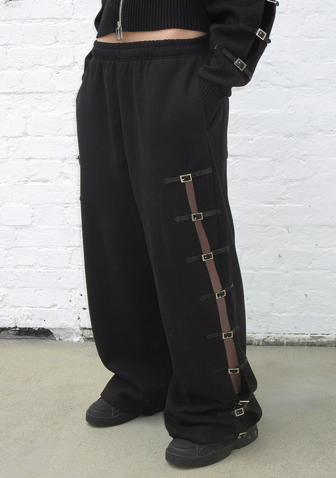★ Embellished with cutouts and faux leather buckle fastening design down outer leg
