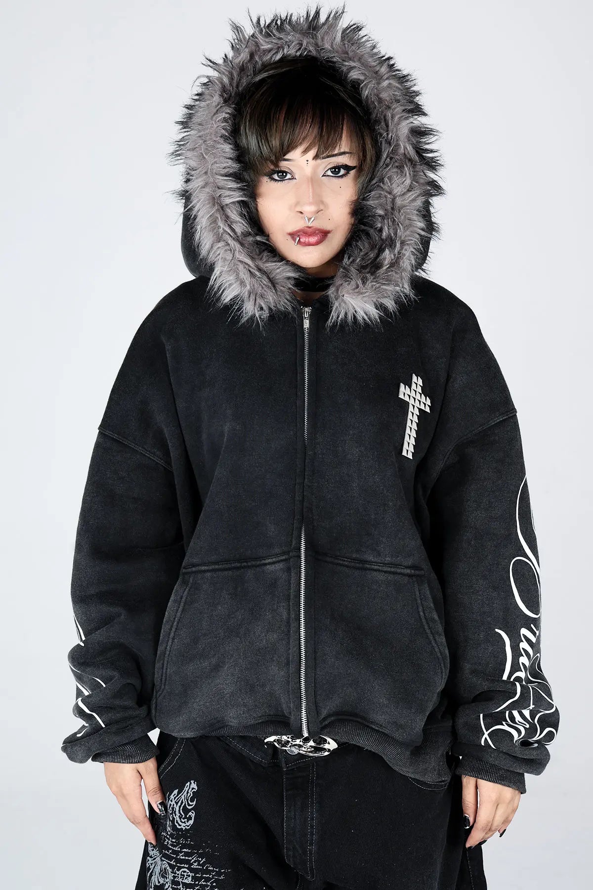 This heavyweight cotton zip-up is made for comfort and durability, with a soft feel that lasts. It features a relaxed fit and detailed screen print built to handle life’s toughest moments. Simple, reliable, and made to help you express your true self, no matter what.e