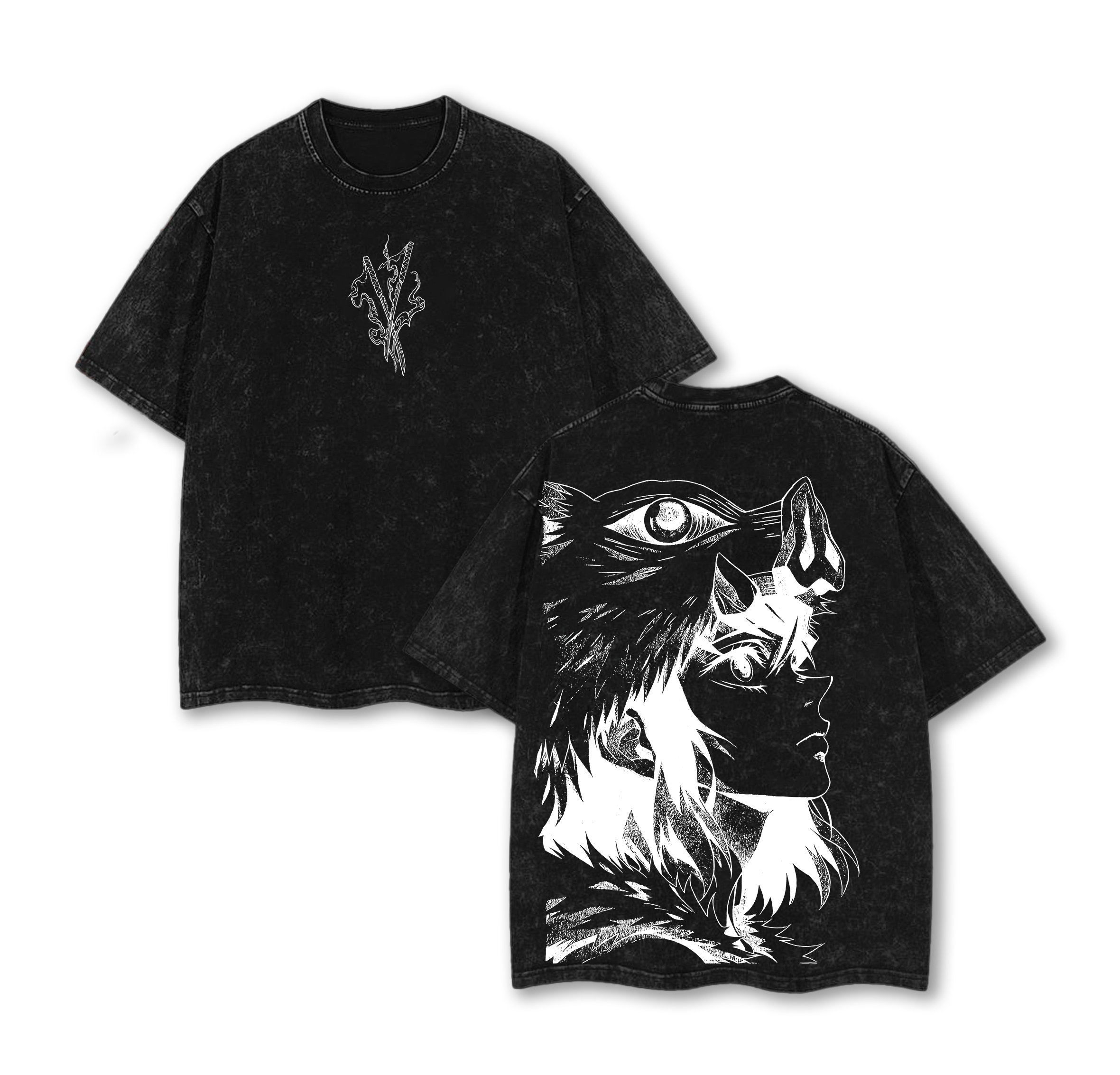 Inosuke - Demon Slayer Anime Double Printed Vintage Washed Tee Unisex Oversize Anime Manga Washed Heavyweight Cotton T-shirt, Gift For Anime Fan, Anime Lover