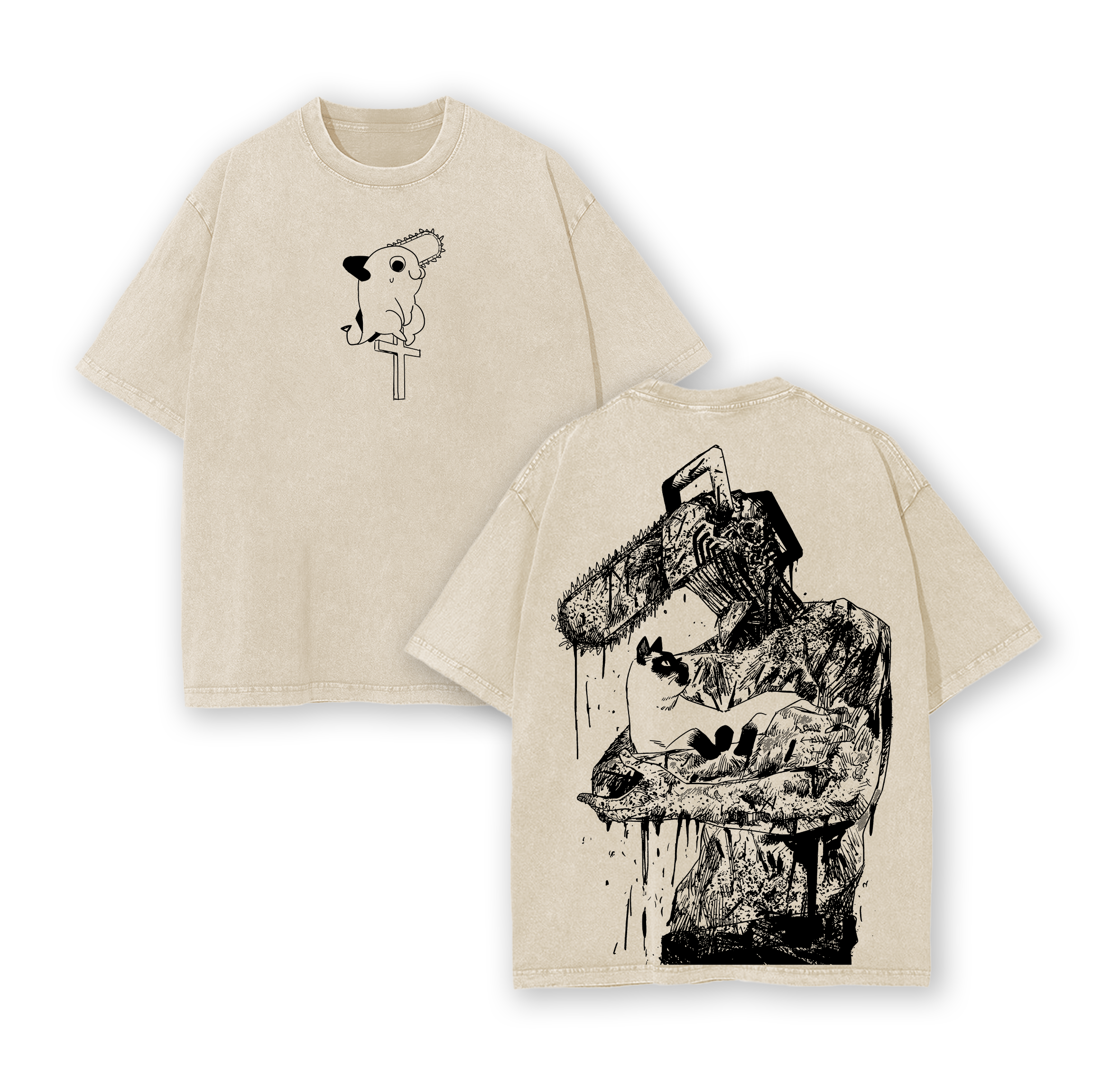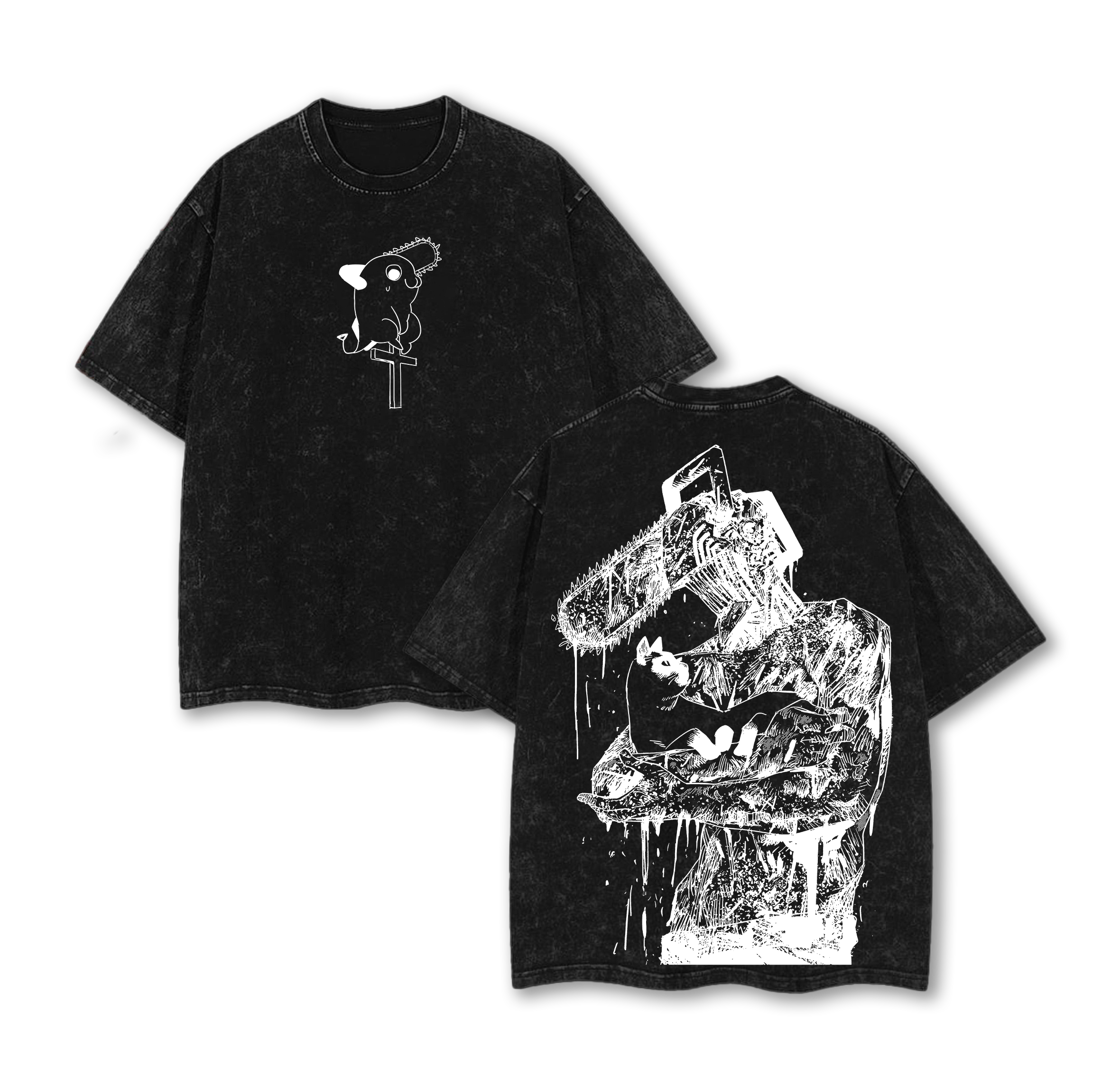 Chainsaw Man Denji Tee – Vintage Washed Heavy Cotton Oversized T-Shirt, Double Printed Anime Manga Graphic Top, Retro Unisex Streetwear for Devil Hunter Fans, Movie Inspired Edition