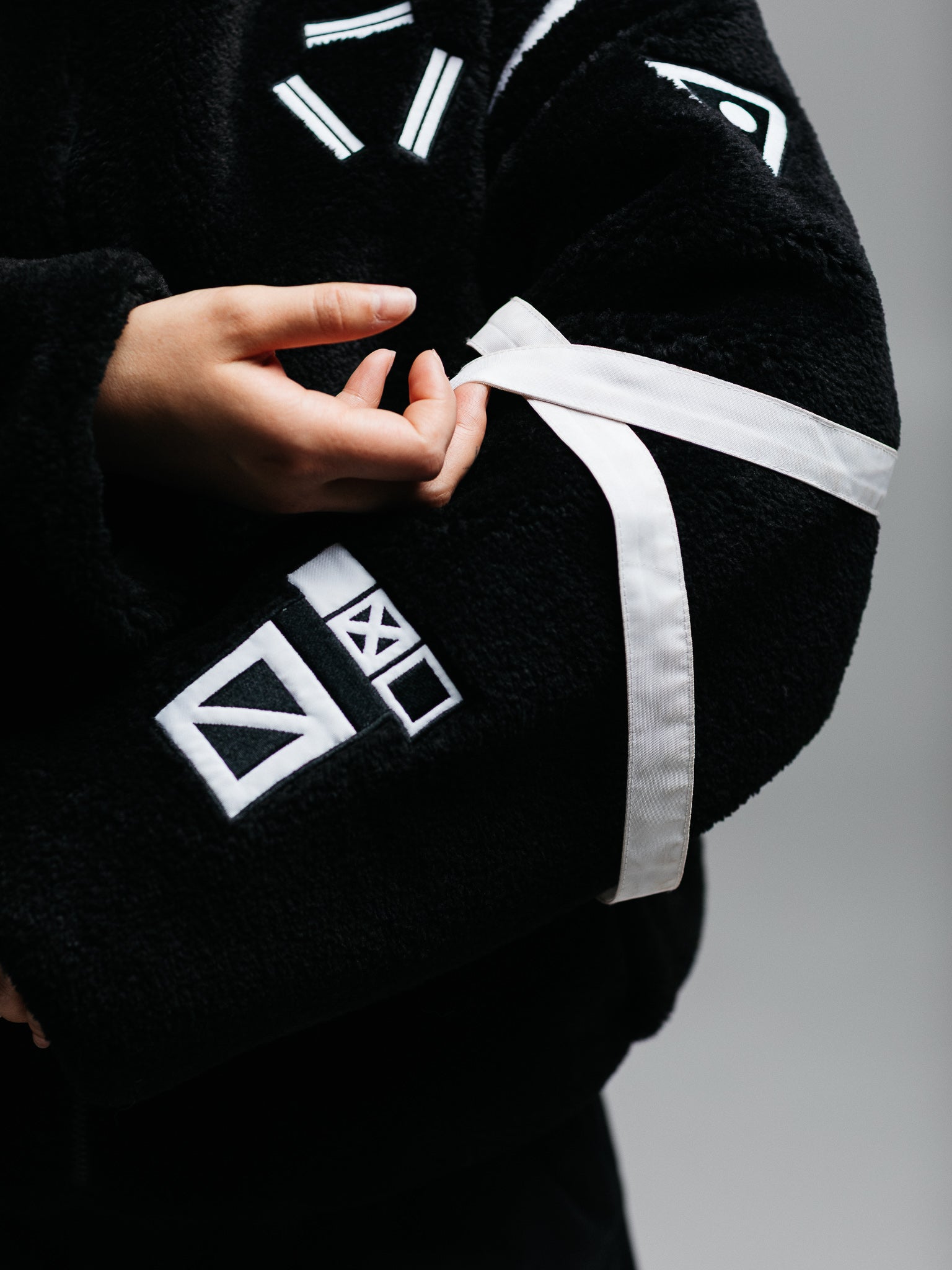 Heavyweight winter insulated sherpa jacket made of Teddy Fleece with embroideries on the front, sleeves, and straps on the left sleeve. Soft and comfortable, warm and breathable. Super Soft!