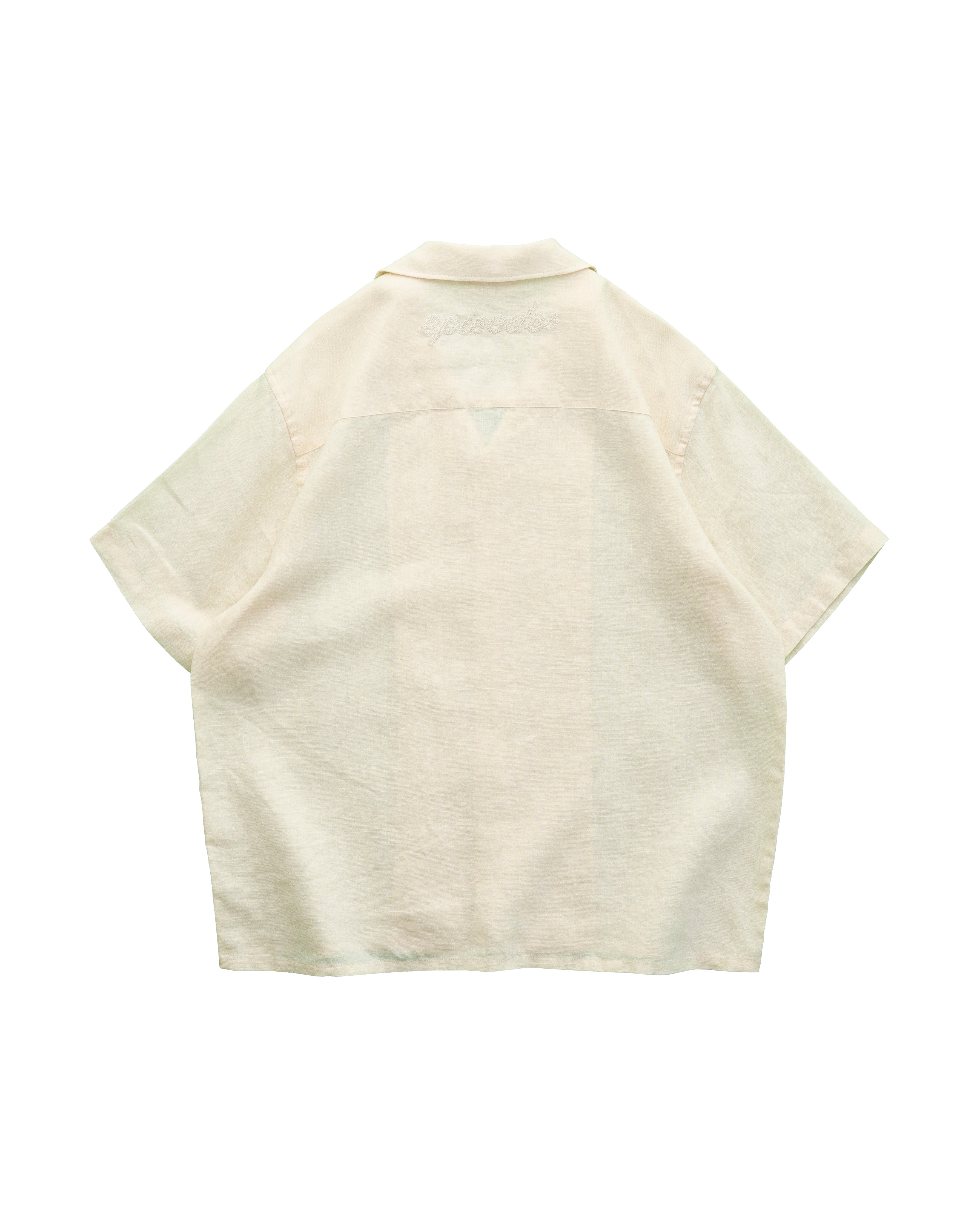 100% Thick Linen Cotton 200GSM - Boxy Fit - Camp Collar - Chain Stitch Embroidery - Discrete Branding.