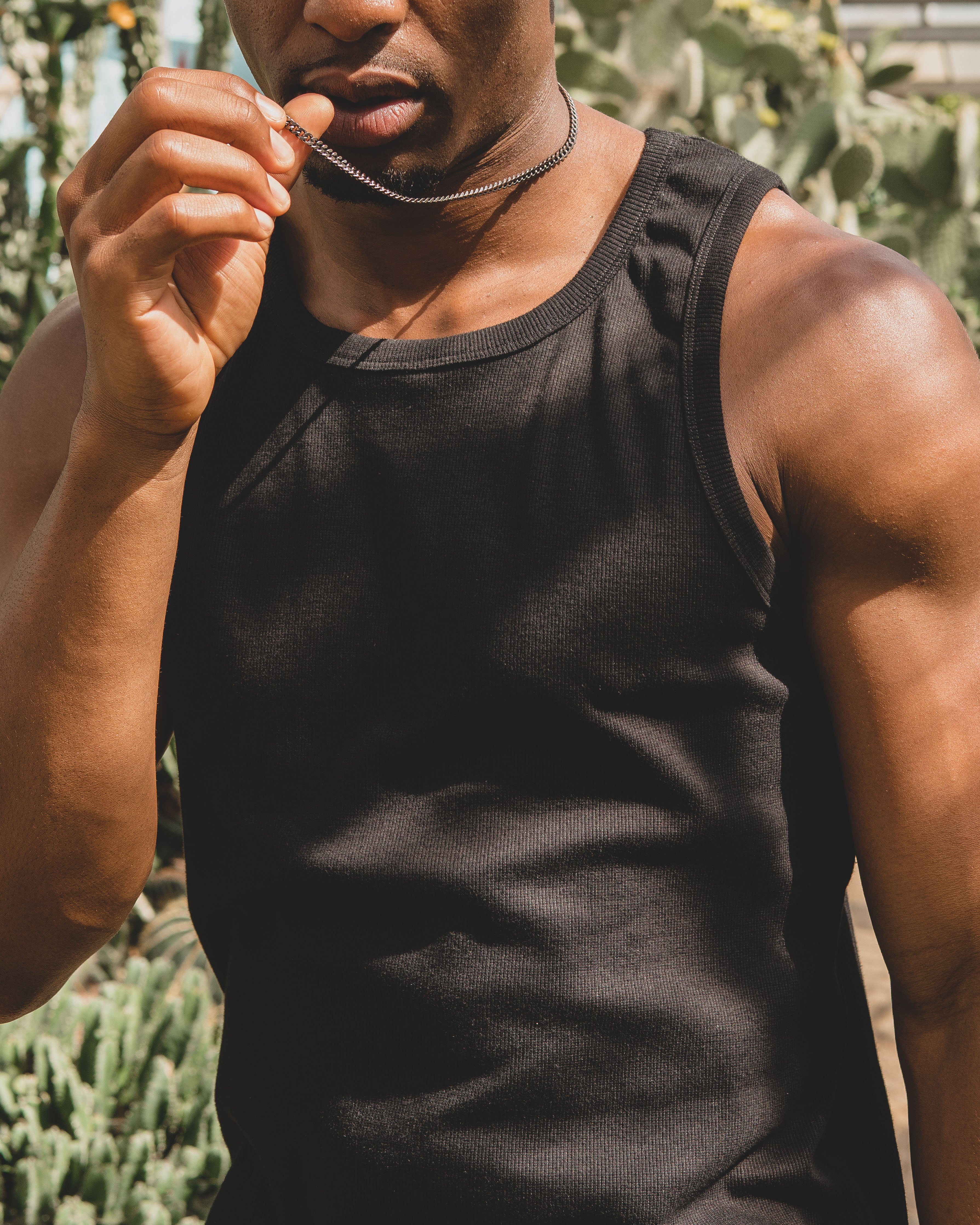 95% Cotton 5% Spandex 260GSM - Ribbed material - Thick neck band - Body Fit.