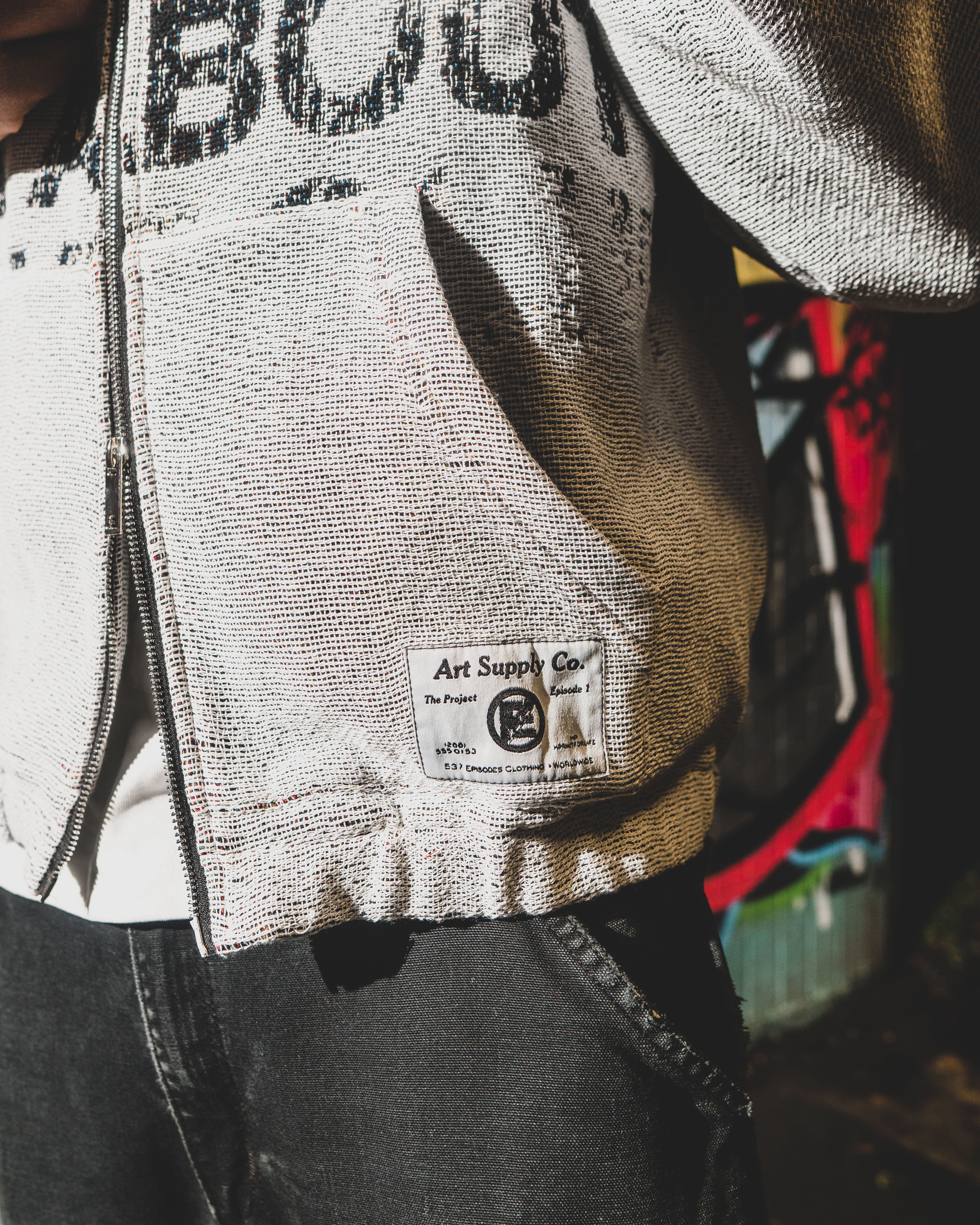 Boxy Fit - Woven Heavyweight Tapestry - 70% Cotton 30% Polyester - Double-Zipper - Double-Lined Hood - Kangaroo Pockets - Elasticated cuffs & waist - Custom woven labels.