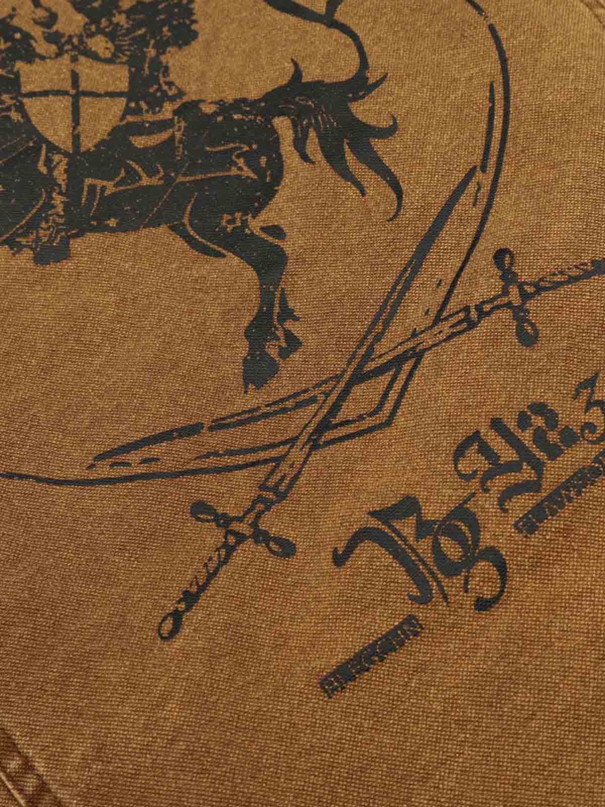 • Details: Back crest embroidery featuring a knight on horseback, crossed swords, and decorative flags; two side flap pockets with snap closures