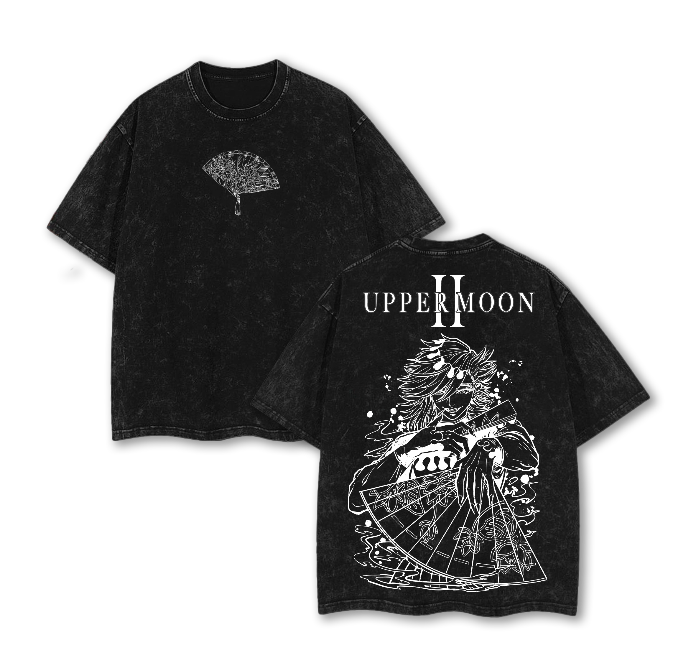Doma Upper Rank 2 Vintage Oversize Washed T-Shirt, Demon Slayer Villain Graphic Tee, Heavy Cotton Anime Streetwear