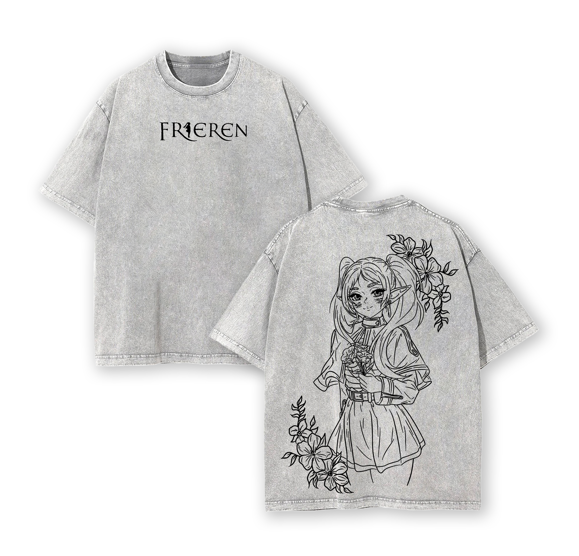 Frieren T-Shirt Beyond Journey’s End Anime Graphic Tee Elf Mage Oversized Acid Washed Cotton Shirt Anime Merch Gift for Anime Fans