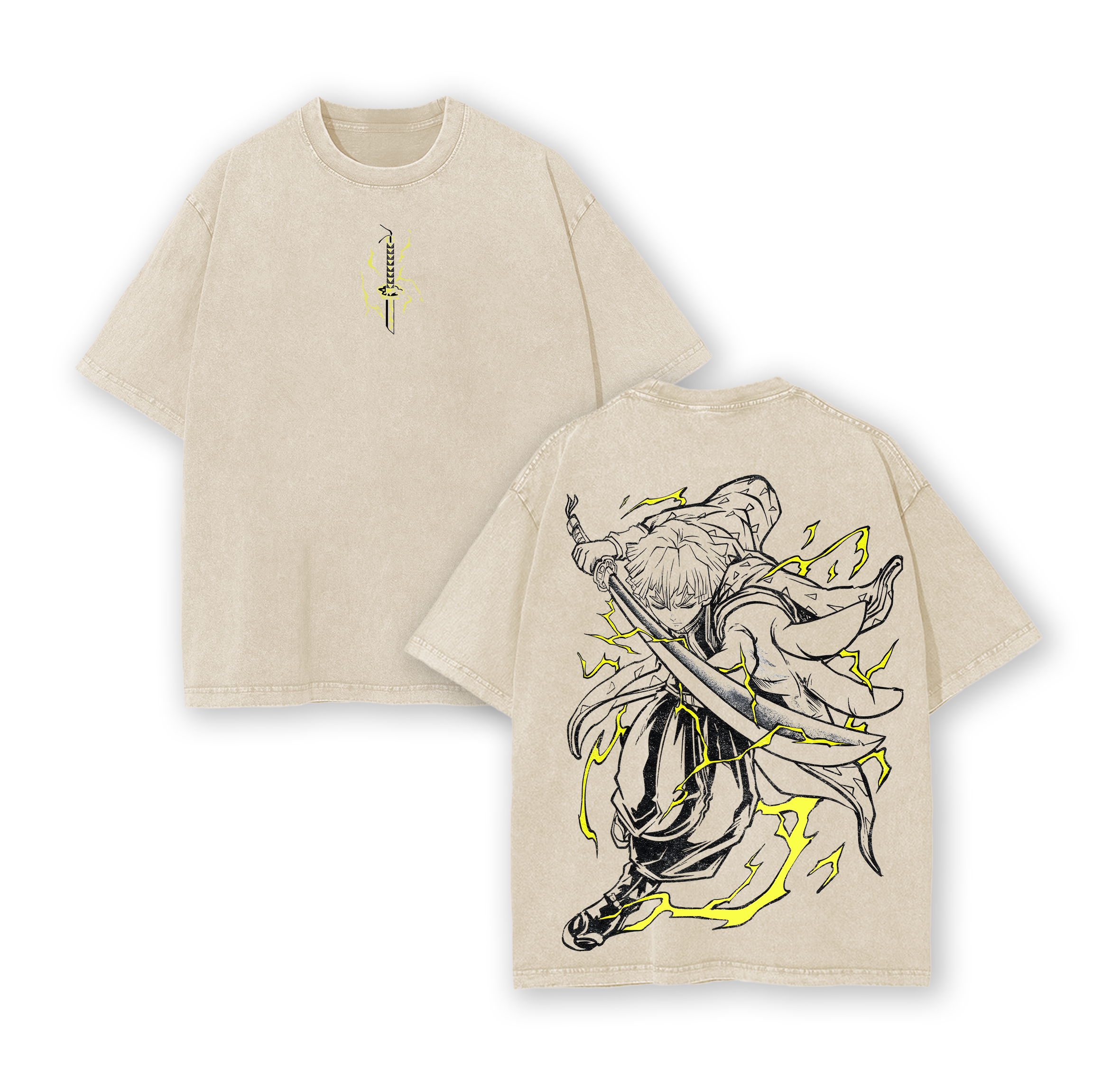 Zenitsu Thunder Breathing Vintage Oversized Washed T-Shirt – Heavy Cotton Graphic Tee Inspired by Demon Slayer